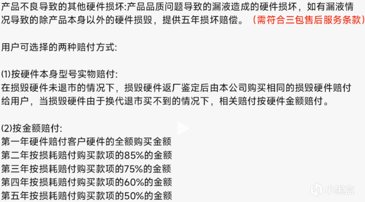 赔付标准:按硬件损坏价格逐年递减,且后期按市价计