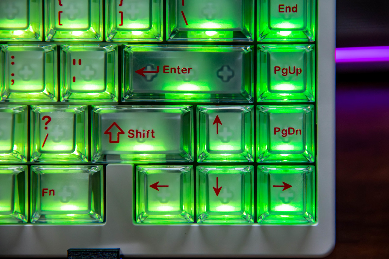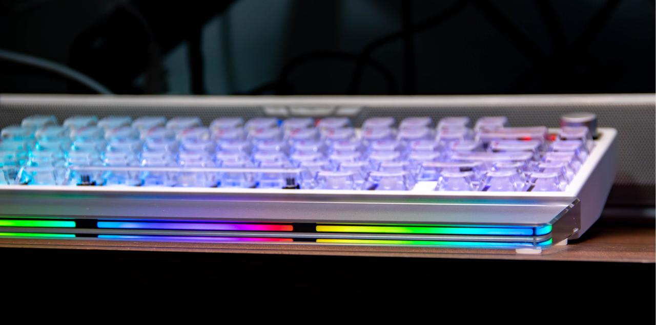 键帽方面为PC顶透雾面键帽,喜欢RGB灯光的有福了。