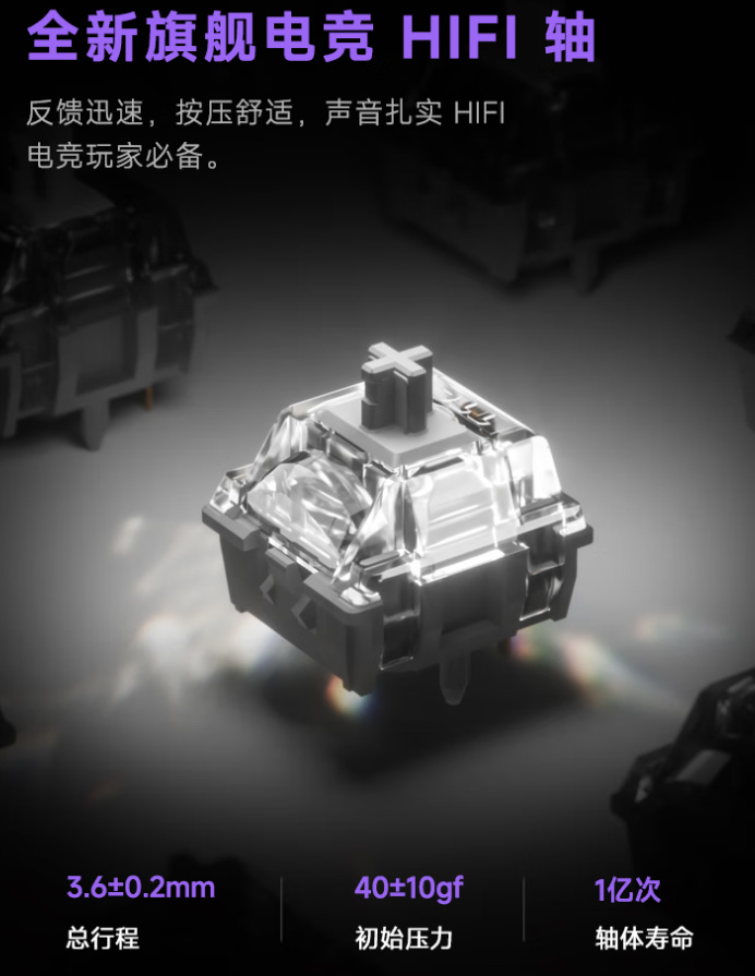 白糯米轴:触发压力仅39g,行程2mm,回弹到位,适合打字或游戏打字兼顾的用户。
