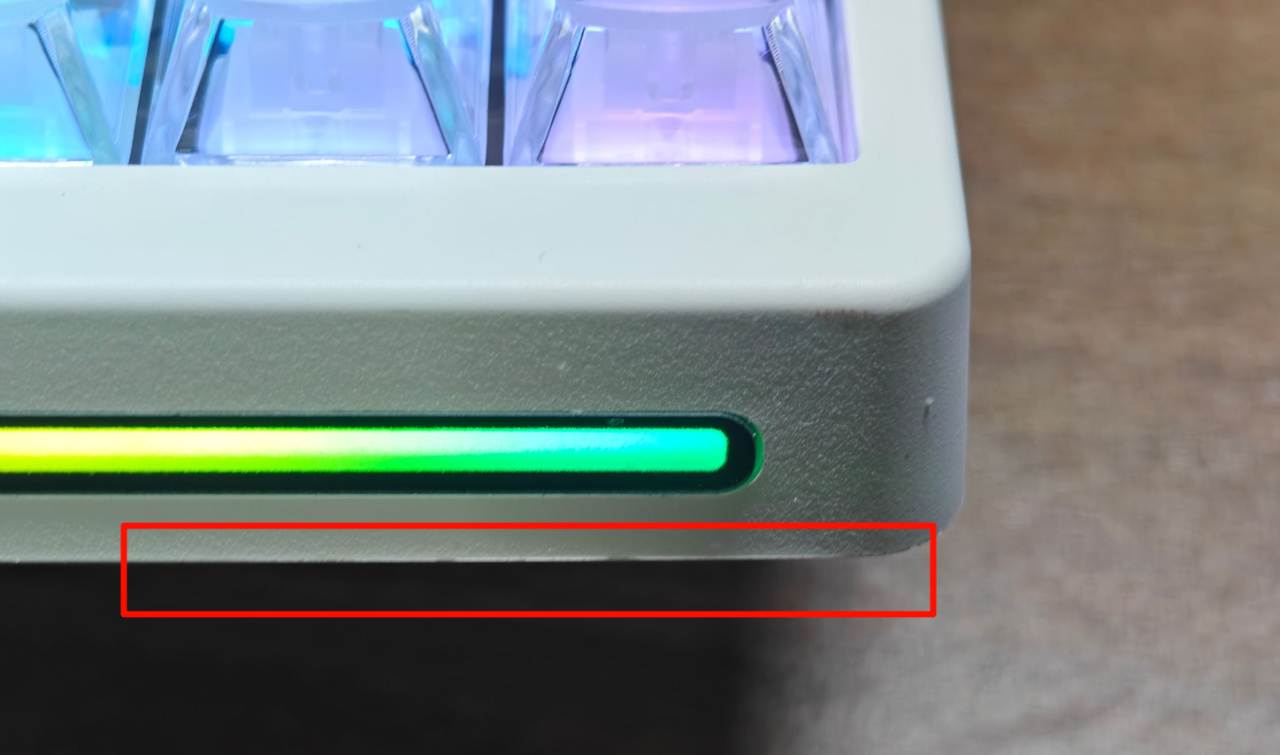 侧面也设有灯条,但需在关灯或使用玻璃桌面时才能清晰看到映射效果,因此个人建议后灯条可考虑取消以节约成本,当然有也比没有好。