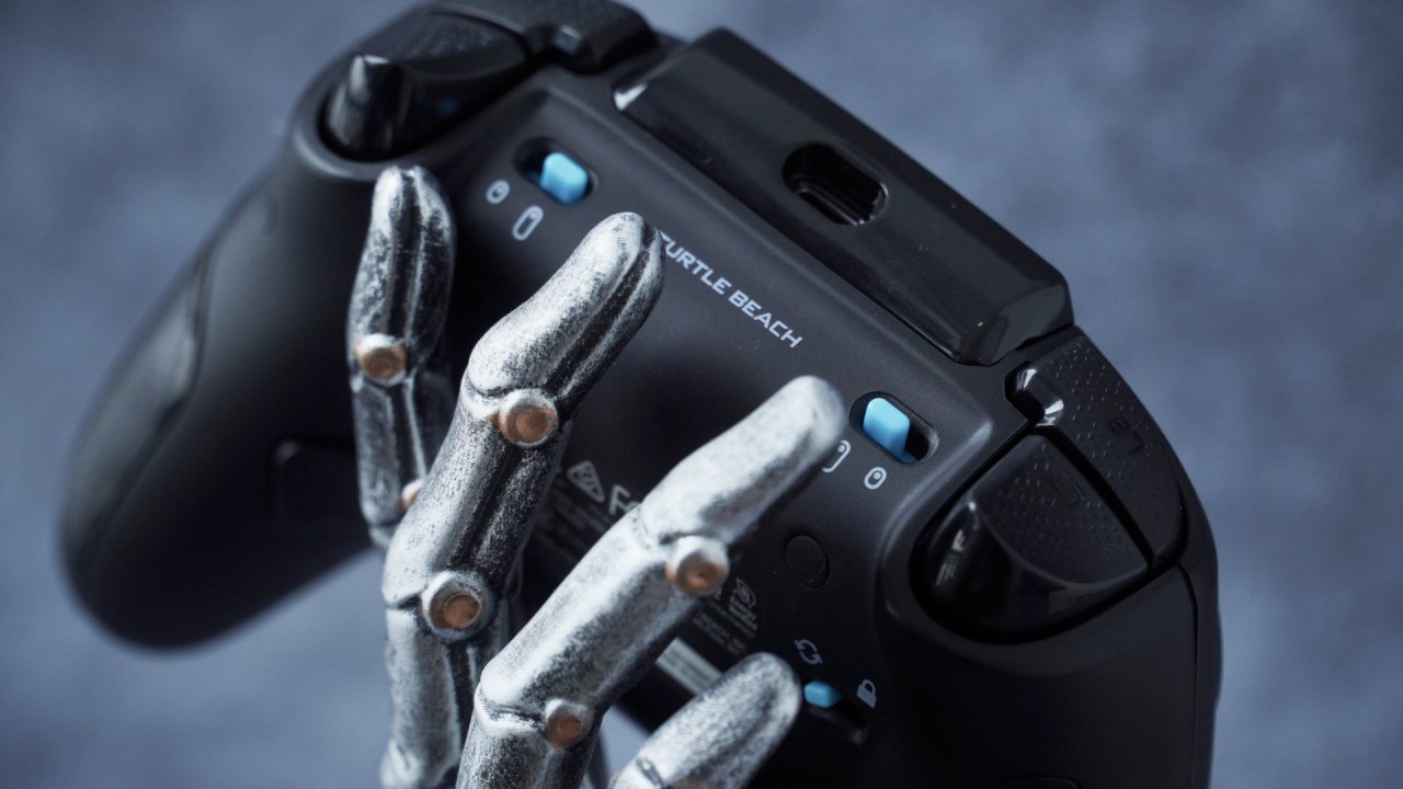 底部可以看到这款手柄的一个3.5mm音频口。玩游戏的时候如果不想打扰到室友或者家人,可以戴上耳机,挺不错的。并且熟悉乌龟海岸的都知道,他家其实主要是做耳机的,这款手柄也搭载了他家的音频技术“超人听觉”