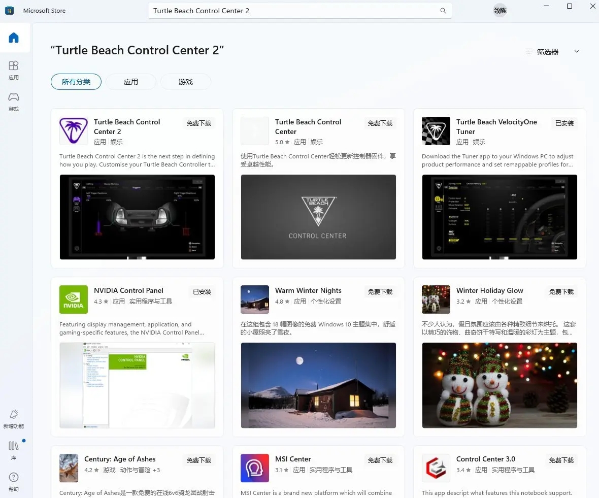 驱动方面和之前刺客ULTRA一样,因为是Xbox授权的原因,所以你直接在微软商店搜索Turtle Beach Control Center 2,再选择第3个紫色图标即可。
