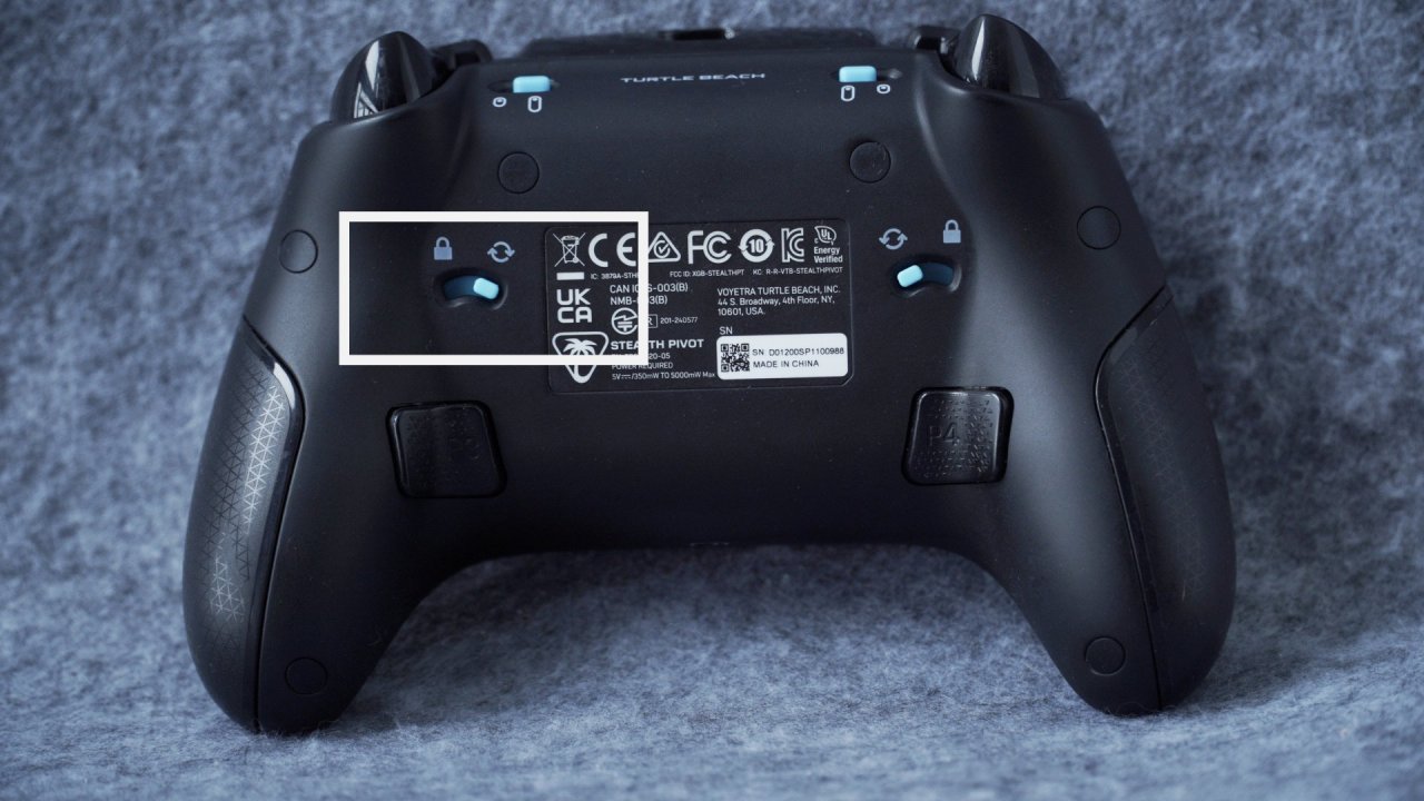 其实这是不需要担心的,因为乌龟对他也是有做保险方案。在手柄的背部区域你可以看到有一个开关,这就是用来控固定旋转模块的