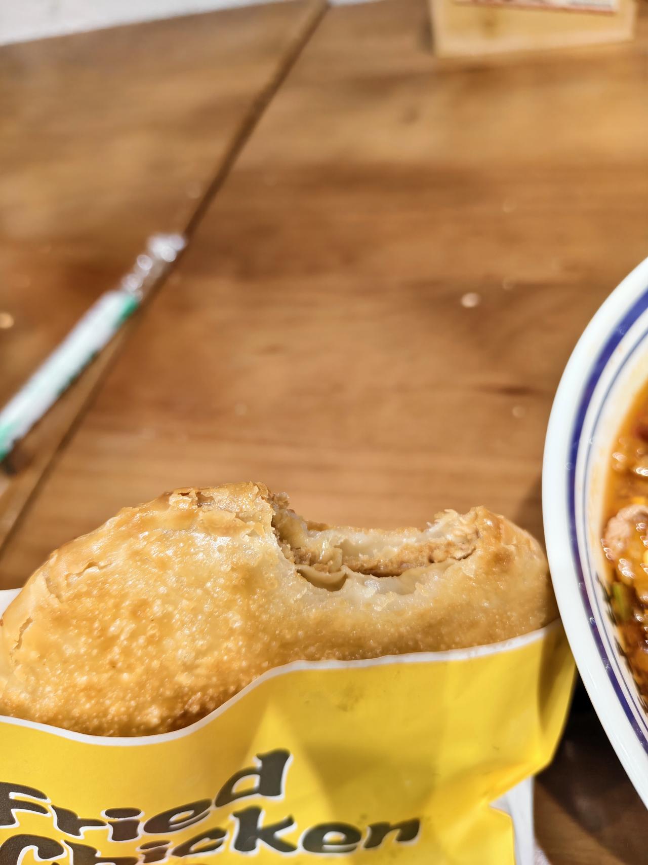 牛肉饼好吃,酥皮,肉汁多,没有为了好看堆大量合成肉,肉饼厚度适中,紧紧贴合里面软乎乎的空心饼皮,香喷喷的蒸汽,肉馅和饼皮一口入嘴,接着喝一口辣汤,中餐养人大概就是说的这种感觉