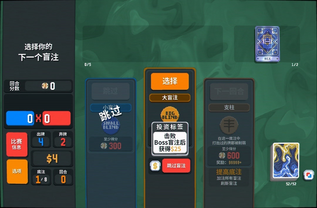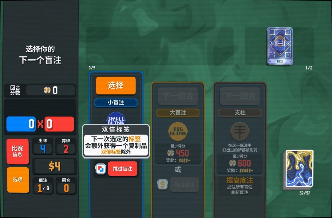 开局直接俩标签,直接全部跳过的话,支柱相当于没有威胁,那不如全跳了赚$50。