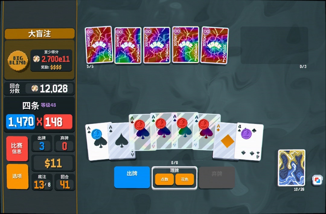 当然开局直接四条肯定不现实,得先用其他牌型和倍率丑过渡一下。