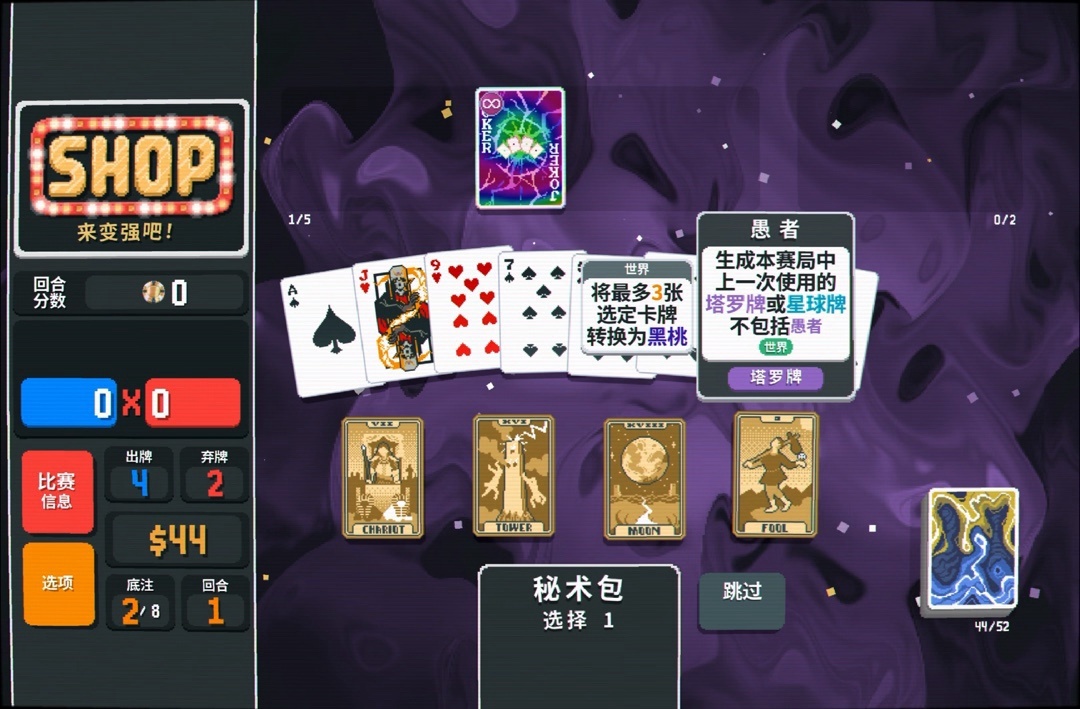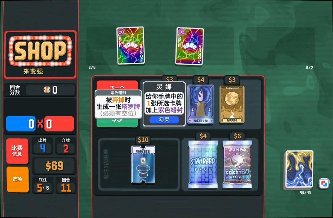 生命十字章迟迟不见踪影,就先拿灵媒吧,可以继续改造牌组,塔罗牌吃钱也可以。