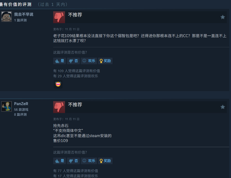近期Steam评测显示更新评价呈"褒贬不一",而升级包则为“多半差评”更新试图建立付费模组系统的意图亦引发玩家群体强烈抵触。