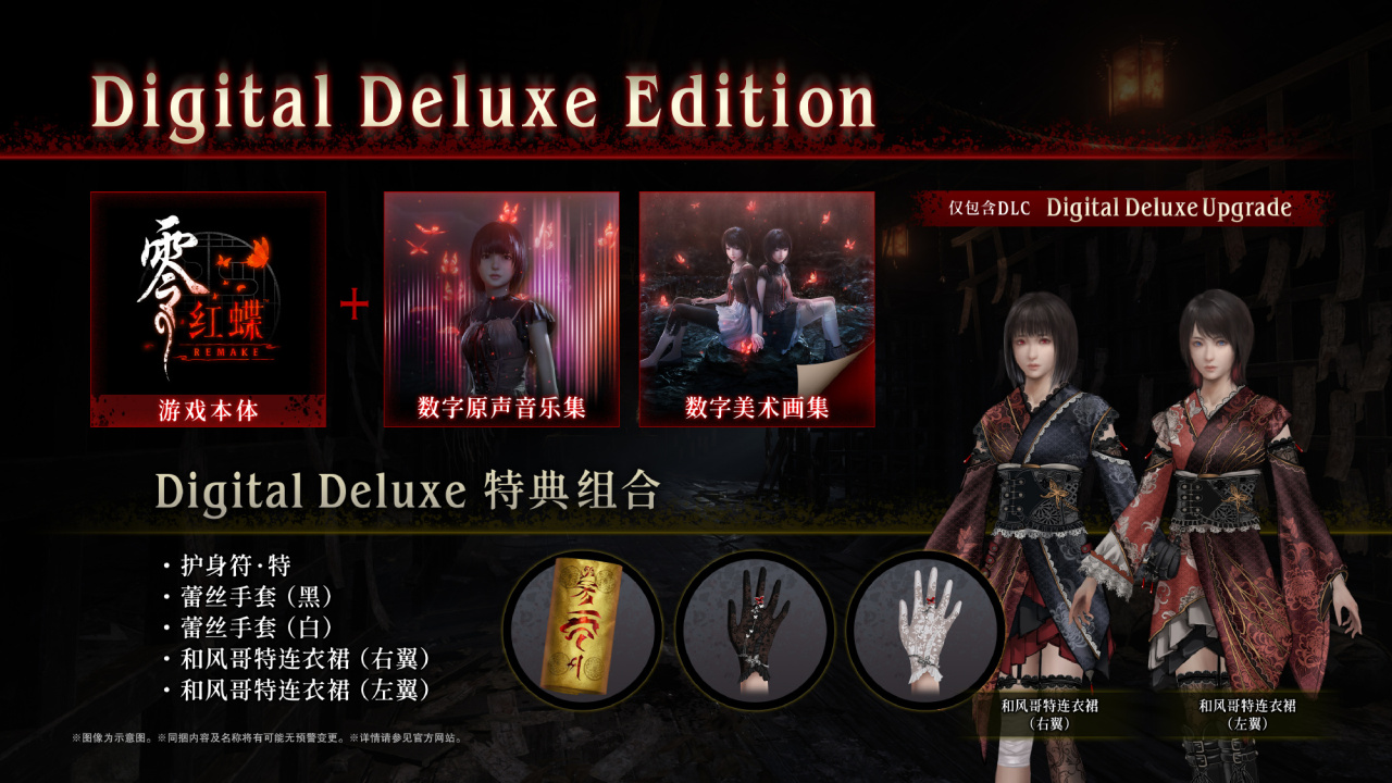 本作是日式恐怖冒险游戏《零红蝶》的完全重制版,讲述一对双胞胎姐妹误入怨灵徘徊的废村的故事。她们需要在推进故事剧情的同时,借助能拍下超乎常理之物并封印其中的照相机——“射影机”,来对抗无数幽灵。