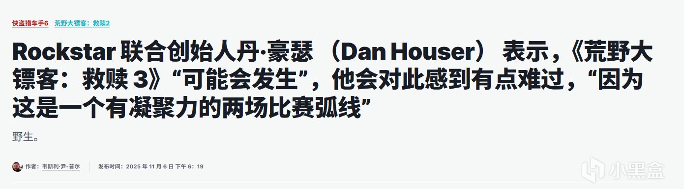 Rockstar Games聯合創始人丹·豪瑟近日在紐約客節採訪中透露,《荒野大鏢客3》很可能面世,但他坦言會爲此“有點傷感”。