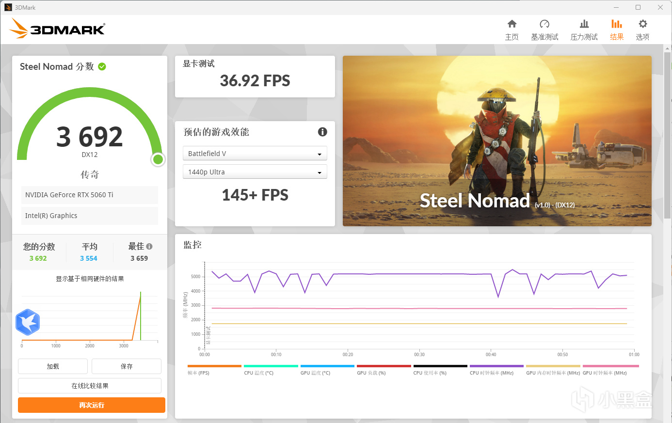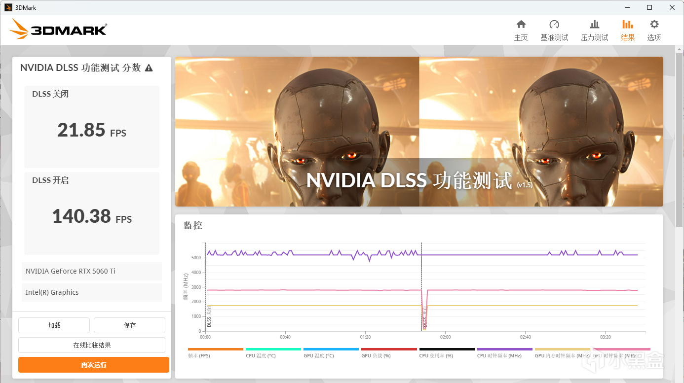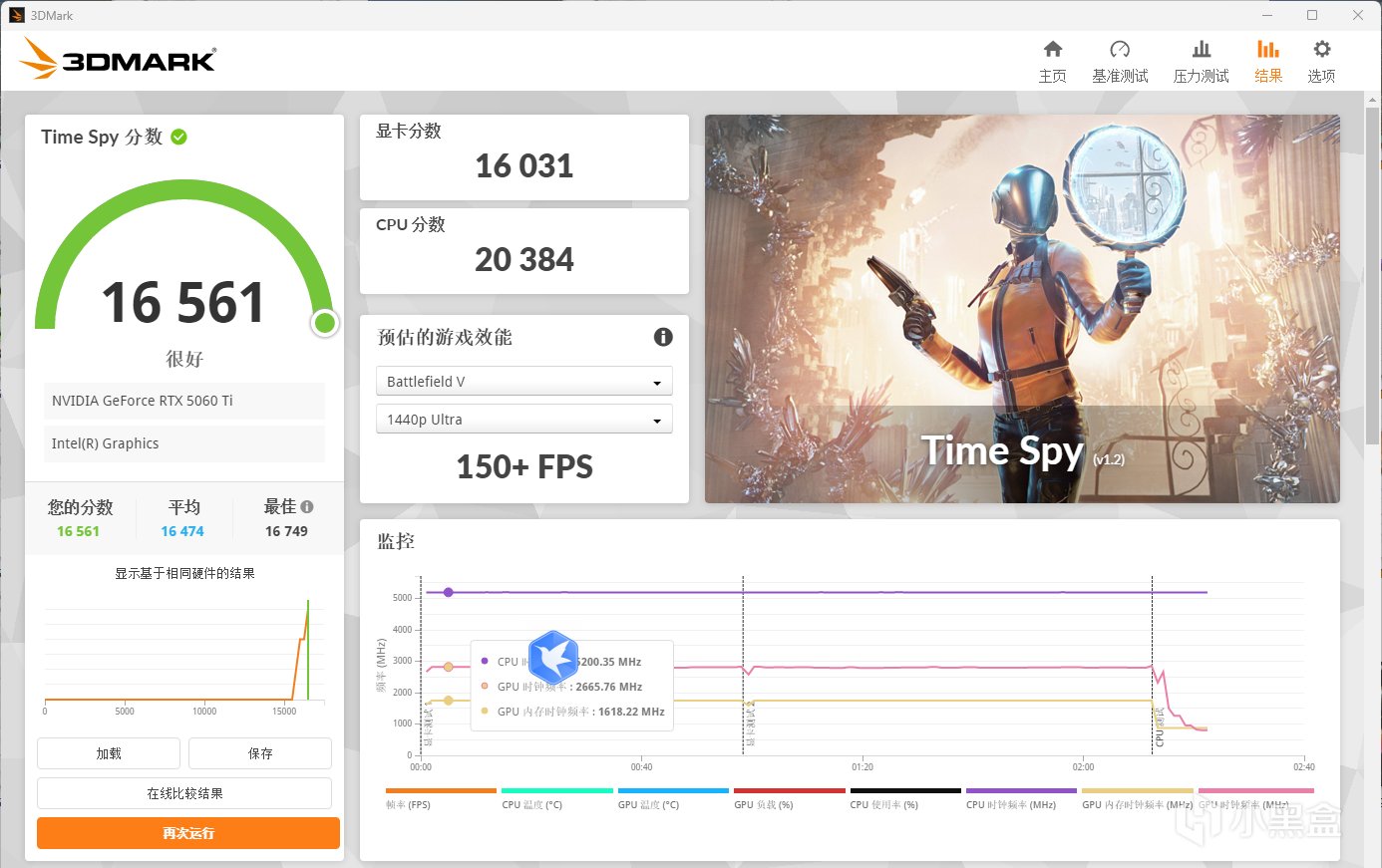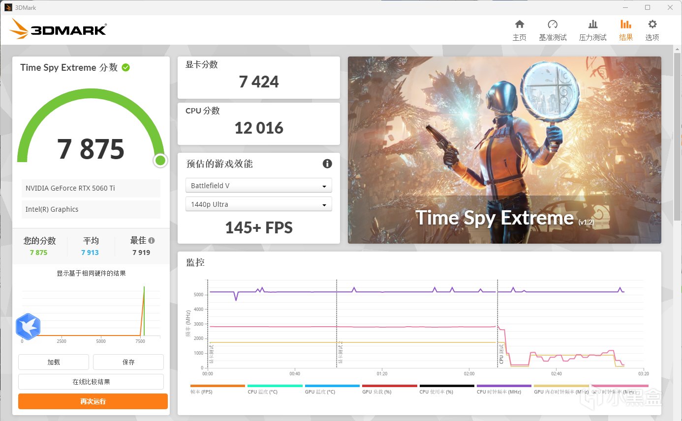 RTX 5060 Ti 16G 作为标准频率版本,在3DMARK显卡基准测试中,表现稳定。