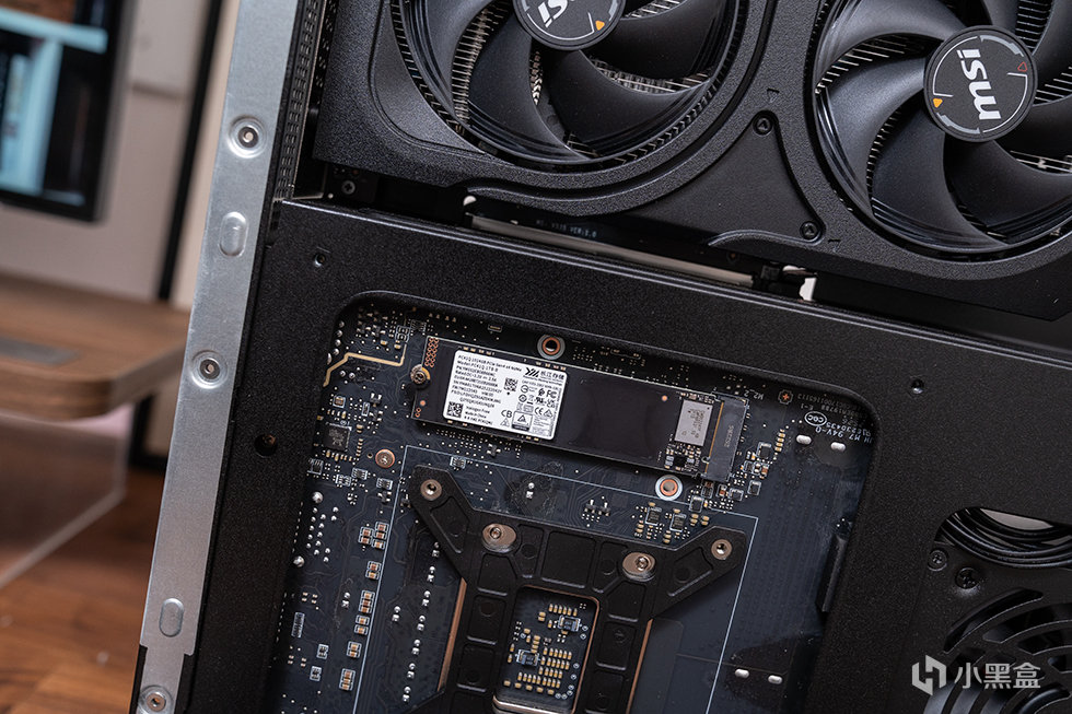主SSD放置在了主板背面,预装长江存储 1TB SSD,配备导热垫,能将热量传递至机箱侧板,有效控制存储温度。
