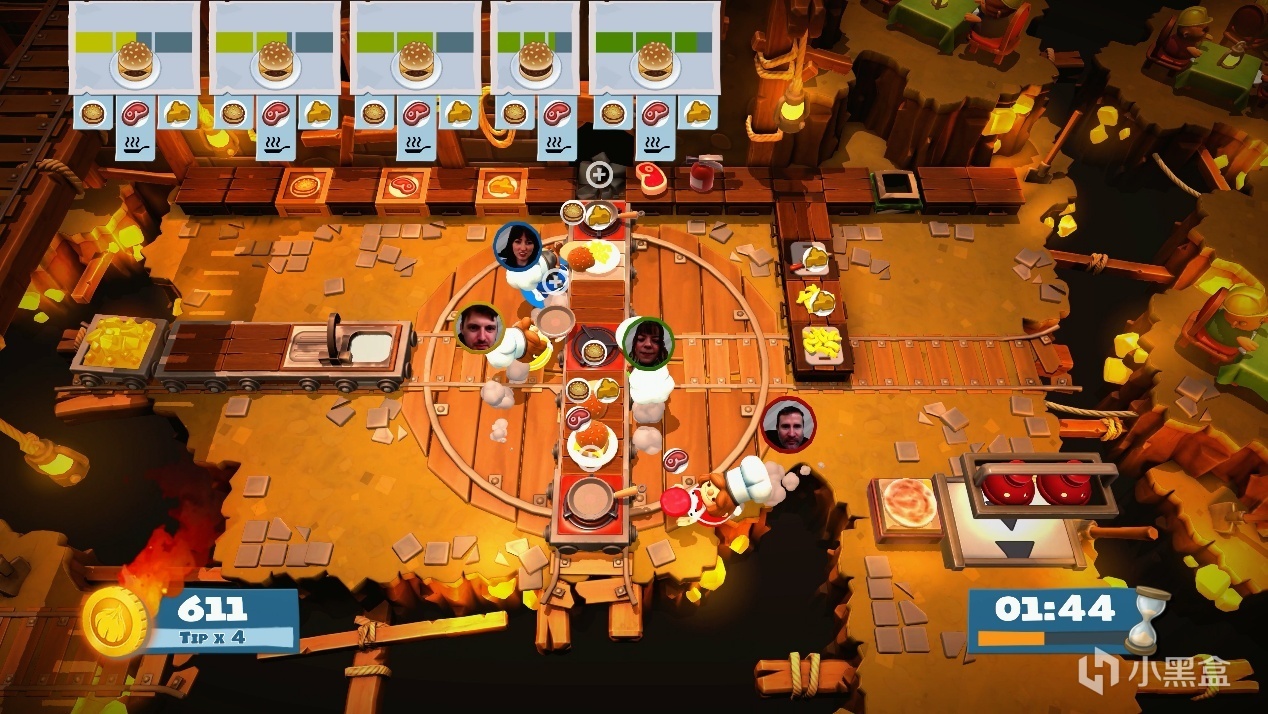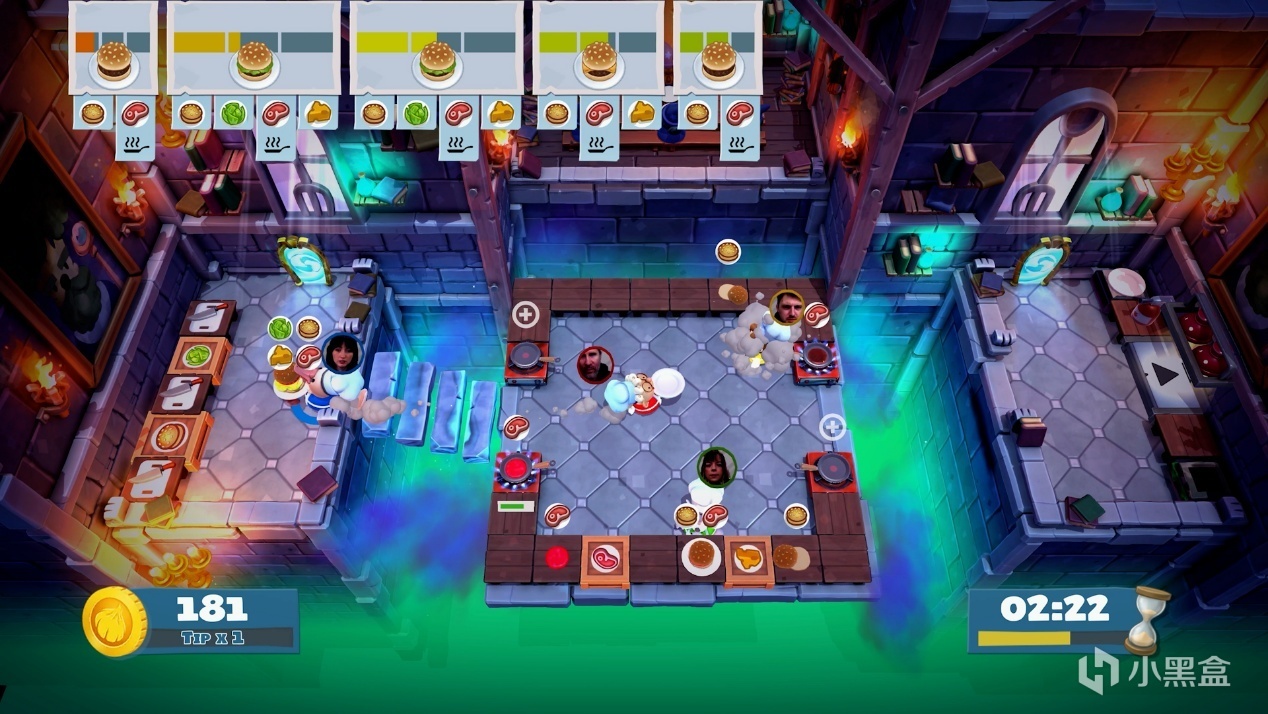 在全新平臺上,遊戲保留了原作核心玩法——最多四人協作完成訂單、切菜、烹飪、送菜並應對廚房環境的變動——同時因硬件升級,關卡表現更加穩定、畫面流暢度提升。