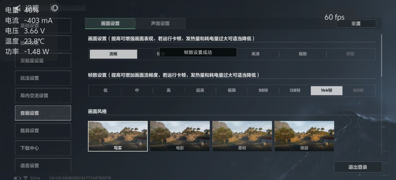 稍微值得注意的是,目前在三角洲中144HZ是无法支持最高特效的,需要开低特效才能够正常运行,不过反正手游屏幕小,这点画质压缩影响不大,而从120帧到144帧到底有多质的飞跃FPS玩家们应该都懂吧!