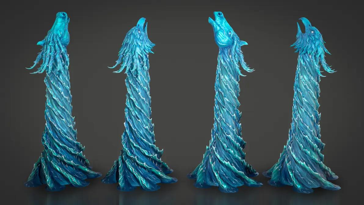 还有个召唤技能,可将一队纯水精魂召唤至战场。它召唤出的纯水精魄血量在25%时会爆炸。