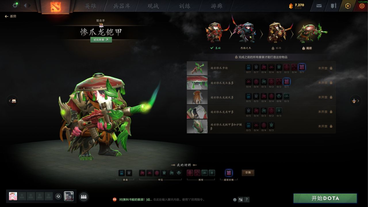 2⃣狙击手(不太推荐,没技能特效,也就最后一套绿色🟢粒子效果明显,每一套碎片需求不同)