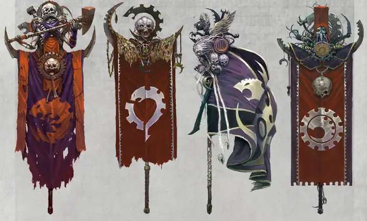 無論是繪製在旗幟上,還是作爲忠誠印記隱藏在教派成員的胸前,每個基因竊取者教派的符號都驚人地相似。儘管帝國各地的教派採用了多種改編與演繹版本,但它們都描繪着相似的、風格化的生物形態。
