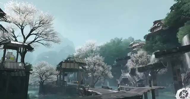 帮助寨民解决天使攻击村落的危机后,就会在新角色带路去武陵城时发现青山瀑布“进阶版”,用较老年代感的水车驱动的各处吊桥。