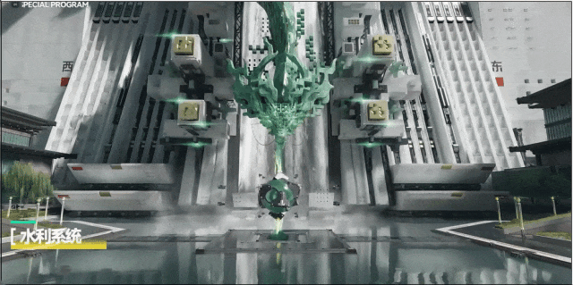再比如武陵城已经跨入到了“水利”超进化,外城墙是具有现代观感的水利大坝画风,城内也四处可见由水力驱动的建筑设施。