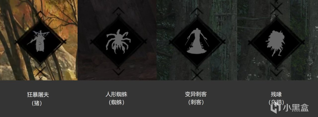 游戏目前有六个boss,其中狂暴屠夫、人形蜘蛛、残喙、变异刺客为大boss,鳄鱼和地狱魔为野外隐藏boss。