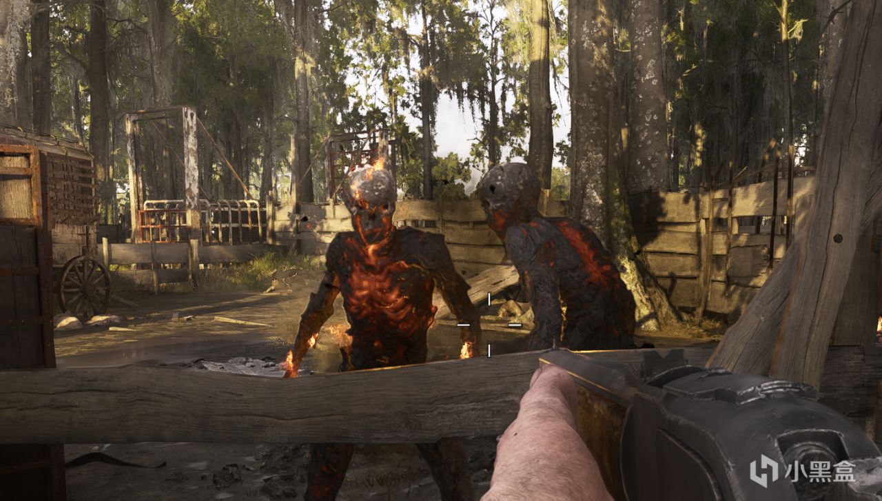 除了怪物以外,遊戲裏還有一些環境生物,如果獵人靠近就會發出響聲,例如馬,牛,烏鴉,鴨子,狗,狗籠子,雞籠子。可以選擇繞道而行也可以選擇飛刀,信號槍等清理。同樣的道理可以通過這些判斷敵人位置,比如烏鴉驚飛,馬叫聲都可以判斷。