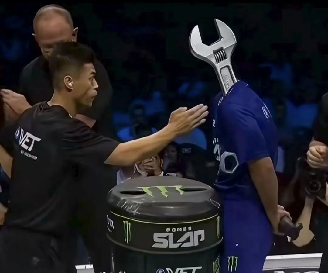无论是在国内表演的那几下,还是赛前让历届冠军感受的打击力度的表现,都能证明他不会太弱。也许是因为被先手打蒙了,也许是因为紧张了,总之他没能成为大众想象中的“一掌超人”。