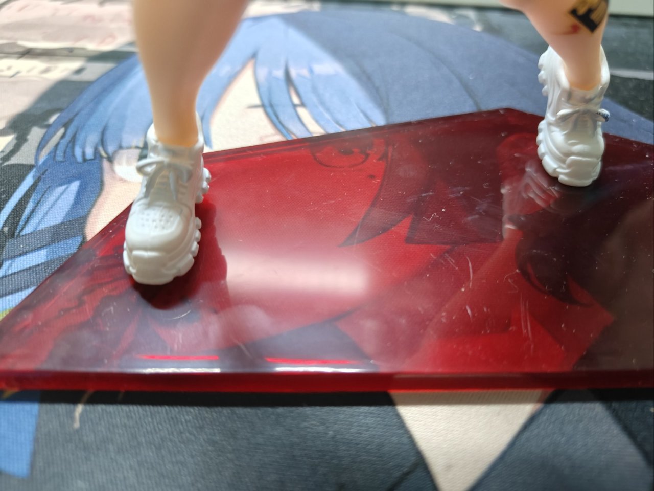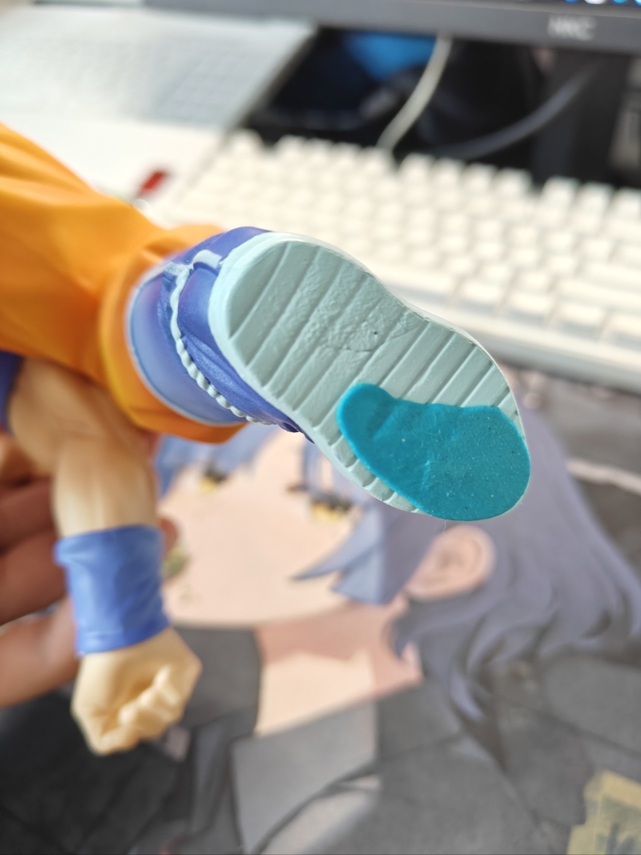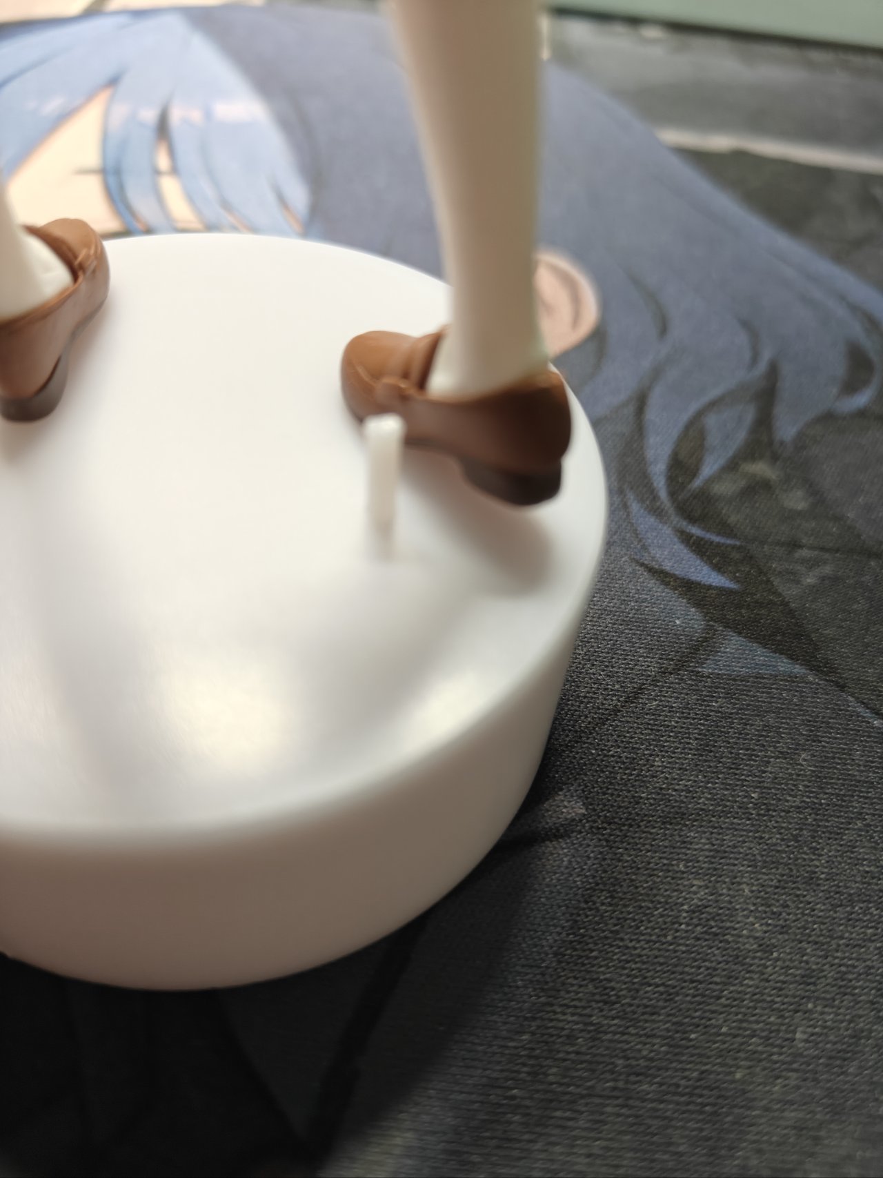 然后就是他是有脚桩的,但是没有任何用处,还是会倒😫,所以想要的想好了,根据群友的反馈应该是通病,基本到手的都是站不住的,只能拿个什么东西靠一下,或者跟我一样垫东西😫这就是为什么是t1,因为不能站稳,pxx返了我10块,这就是为什么是40,可惜了这一点