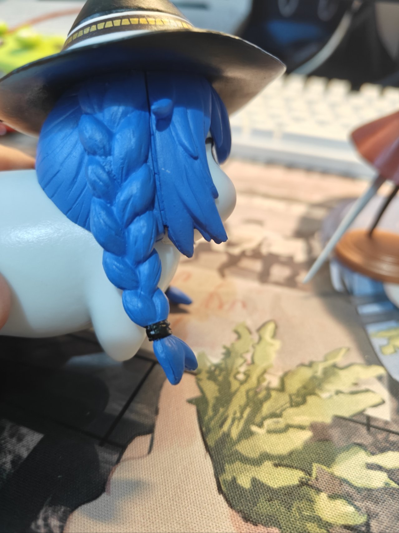 拉进看瑕疵就出现了,脸有点麻麻赖赖的,头发和脸是拼接的,pvc的头发只能说就这样了吧,蛮可惜的。