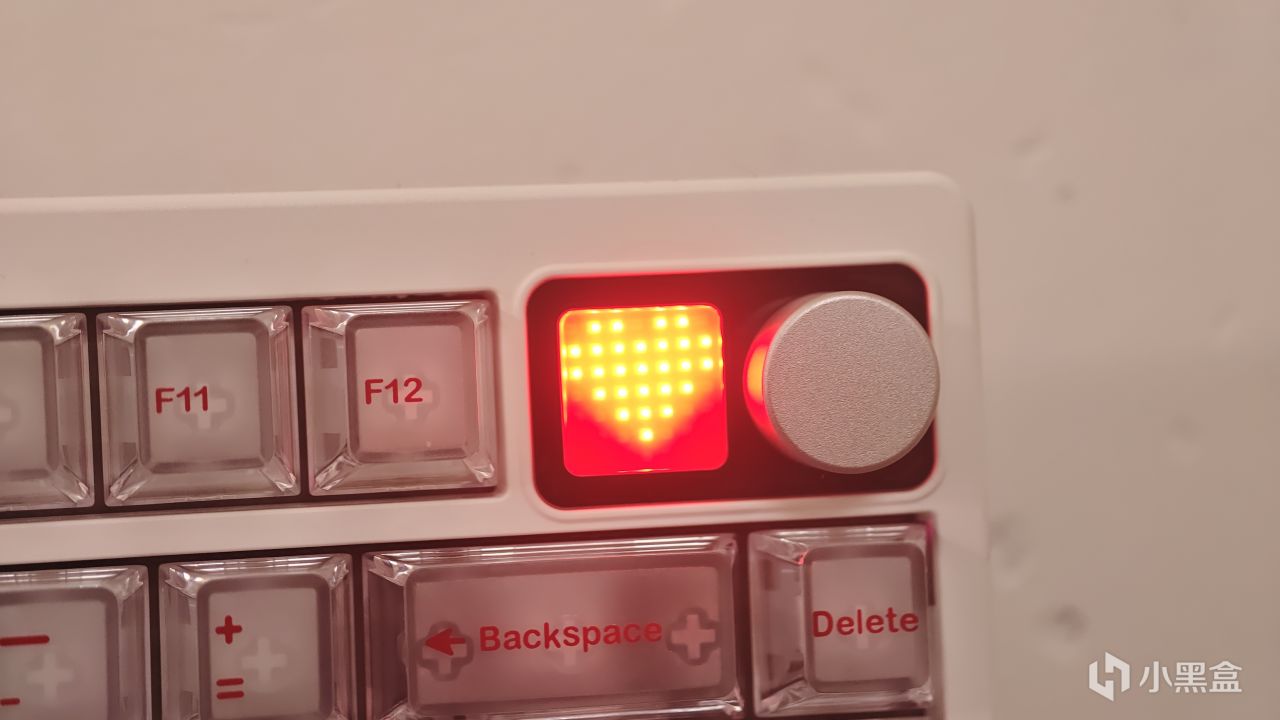 本体采用现在键盘最偏爱的75%配列,在赋予键盘足够小占地面积的同时兼顾了最多的功能 同时右上角旋钮+点阵屏幕是我全都要