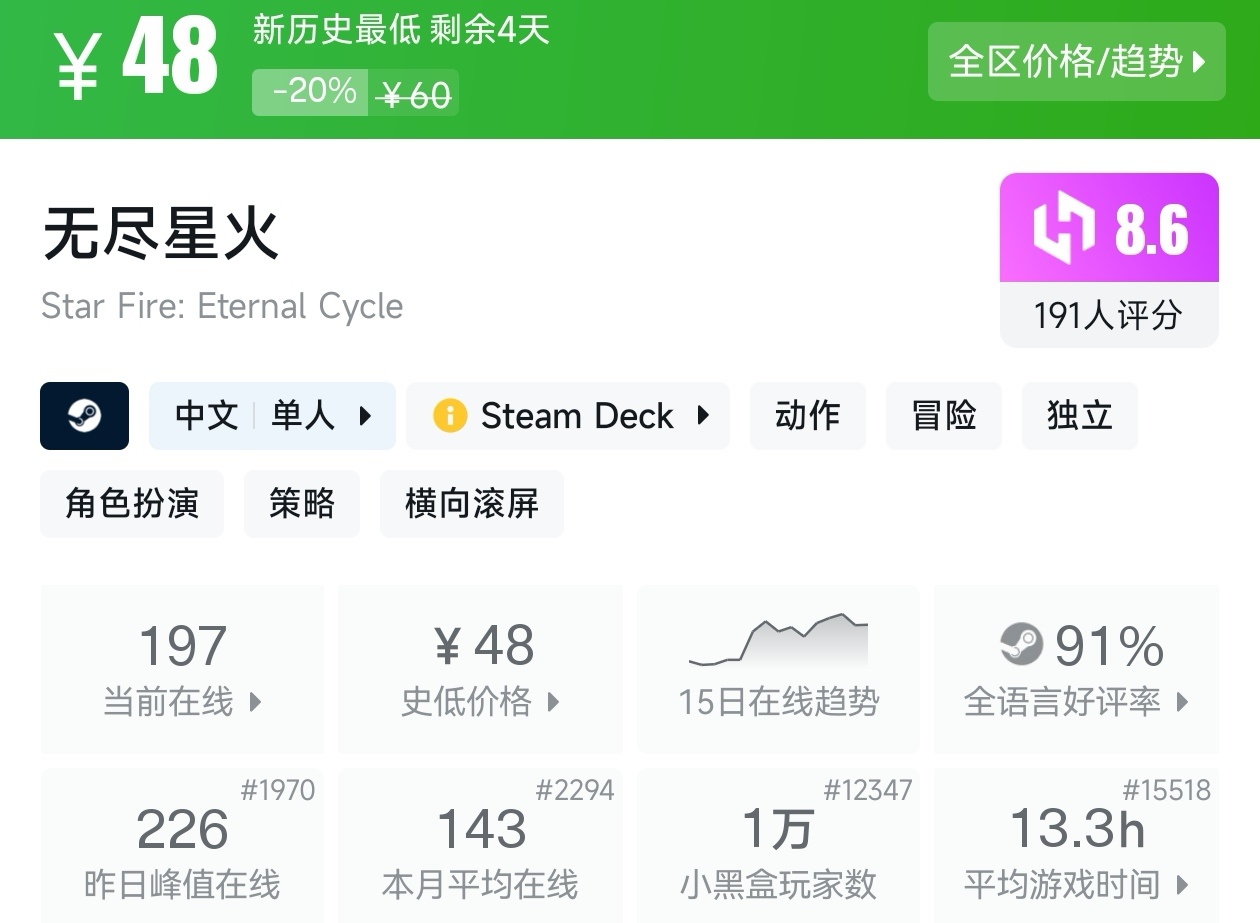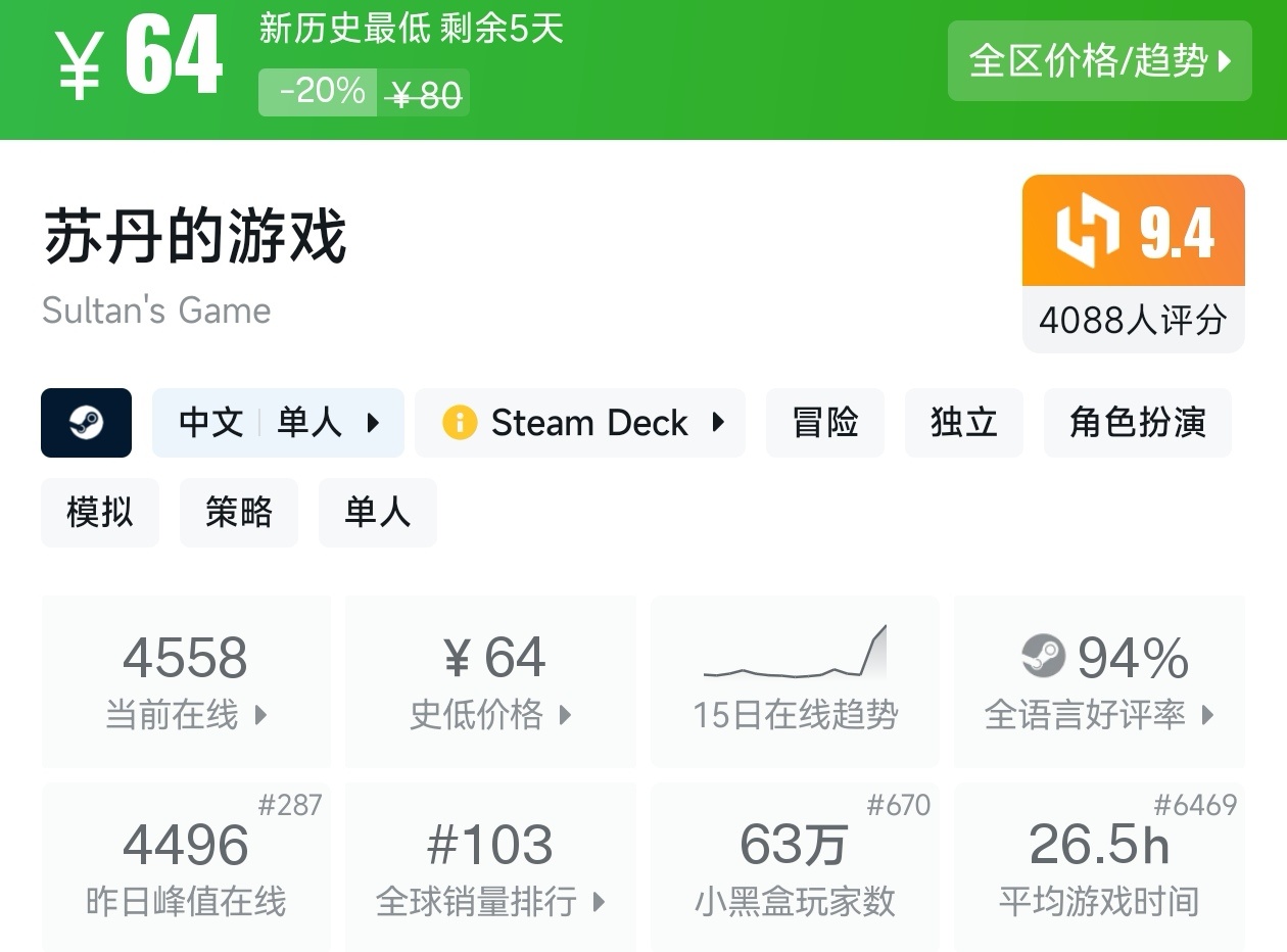大家好,没错,又是我,你们的老朋友亦然,最近Steam又有很多游戏都迎来了新史低,这次的新史低以独立游戏为主,很多都是精品,当然其中也有大作,其实新史低的游戏买起来最有安全感,因为在很长一段时间都不会更低,我将为各位进行一个汇总,希望我的汇总,能够帮助各位盒友挑选心仪的游戏。