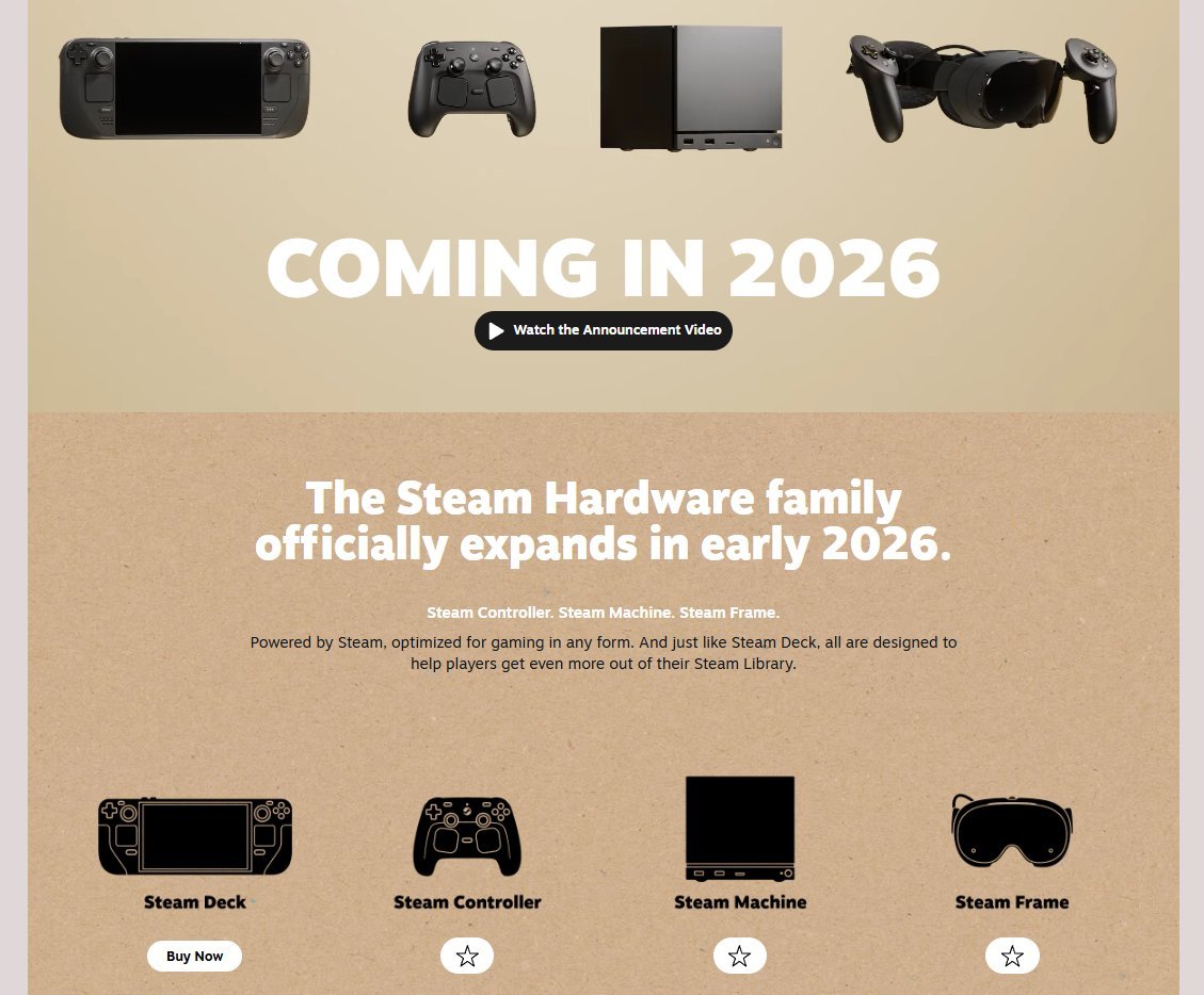 Valve公司宣布将于2026年初显著扩展其硬件生态系统,推出三款全新设备——Steam Frame、Steam Machine与Steam Controller,所有产品均专为在SteamOS环境中流畅运行而设计。此次硬件家族更新标志着Valve迄今最宏大的尝试,旨在将PC、主机与VR游戏整合至统一互联平台。