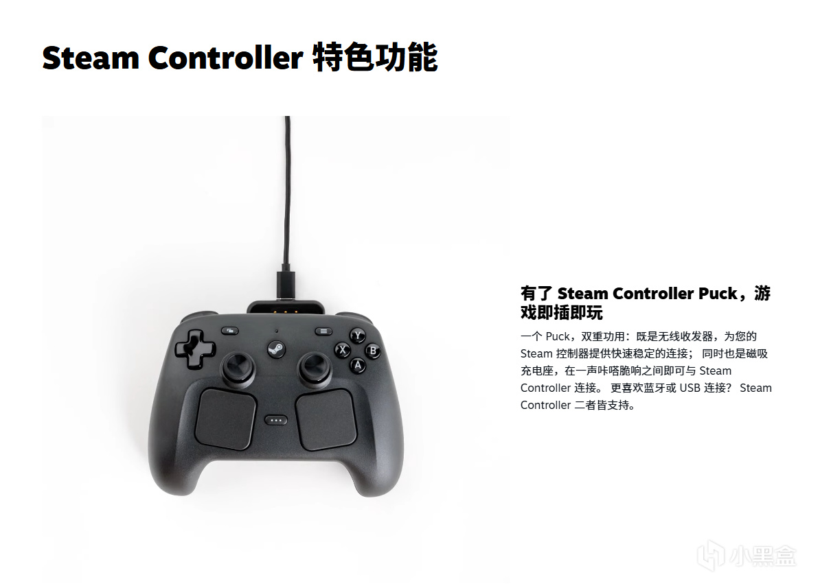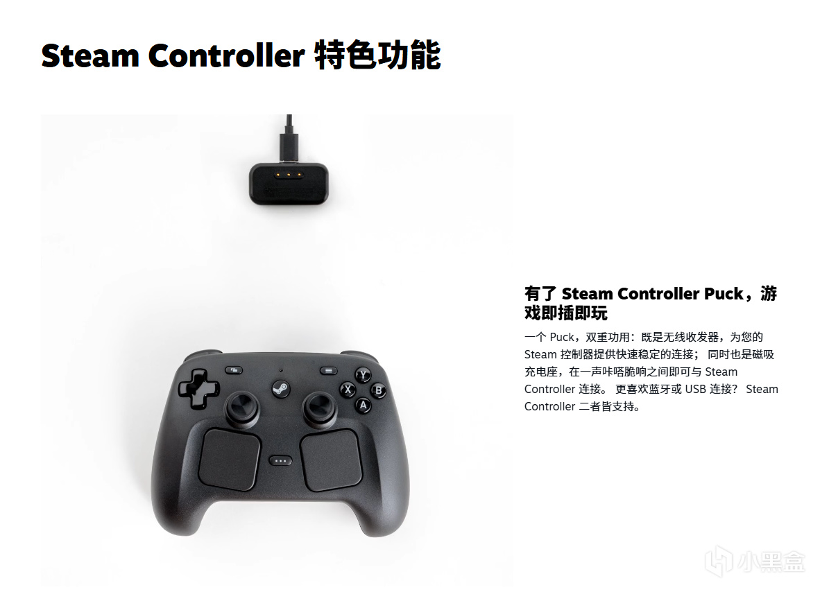 • 充電:通過 Steam Controller Puck 的 USB-C 接口進行充電。