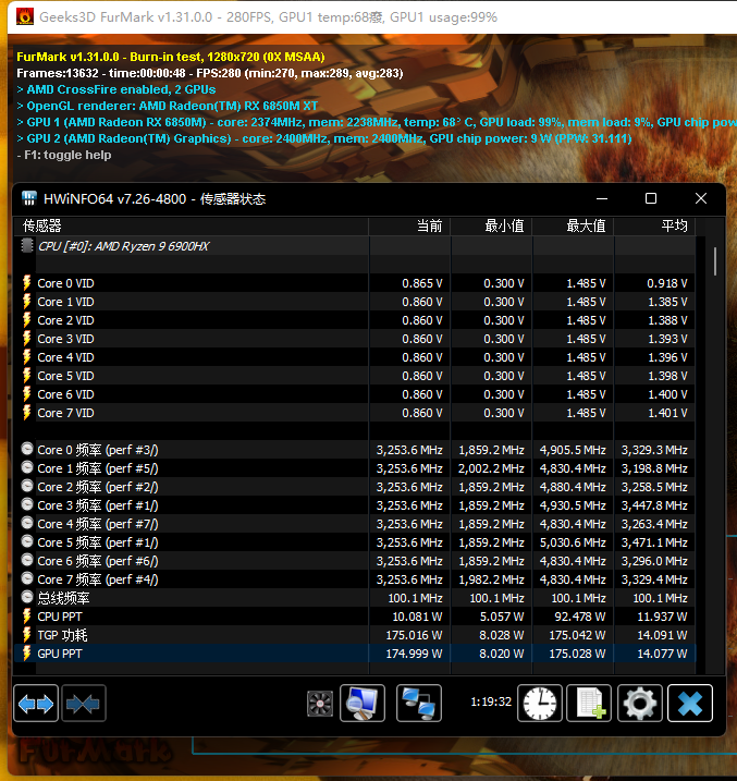 實測Radeon RX 6850M XT考機功率穩定保持175W
