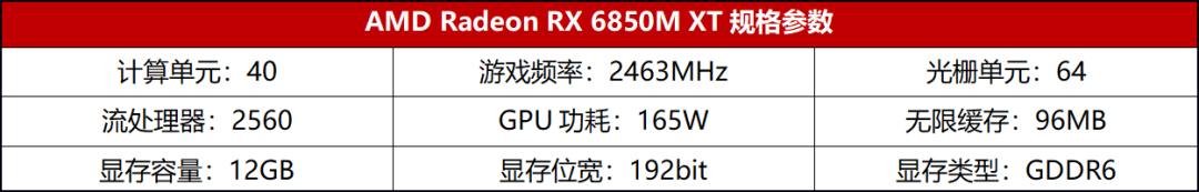 顯卡:AMD Radeon RX 6850M XT 12GB