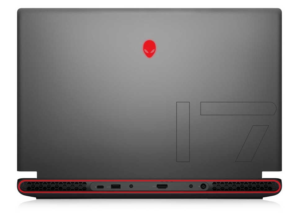 說完核心硬件配置,我們再來看看筆記本本身。作爲奢華級旗艦,外星人m17 R5外觀的家族元素非常明顯。這一代的模具依然保持了霸氣十足的巨無霸風格,A面的外星人頭像LOGO和“17”符號化圖案辨識度很高,機身尾部的環形燈帶、多處可見的蜂巢結構都是妥妥的外星人元素,解構幾何與鋒利骨線的運用凸顯了外星人獨有的未來主義美學,對於喜歡外星人奢華風的粉絲來講可謂放毒力十足。