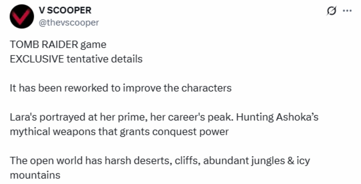 知名爆料人@thevscooper于11月12日透露了《古墓丽影》新作的初步细节。据悉,这款由水晶动力开发的作品将呈现处于事业鼎盛时期的劳拉·克劳馥,她将踏上追寻古代皇帝阿育王神话武器的征程。