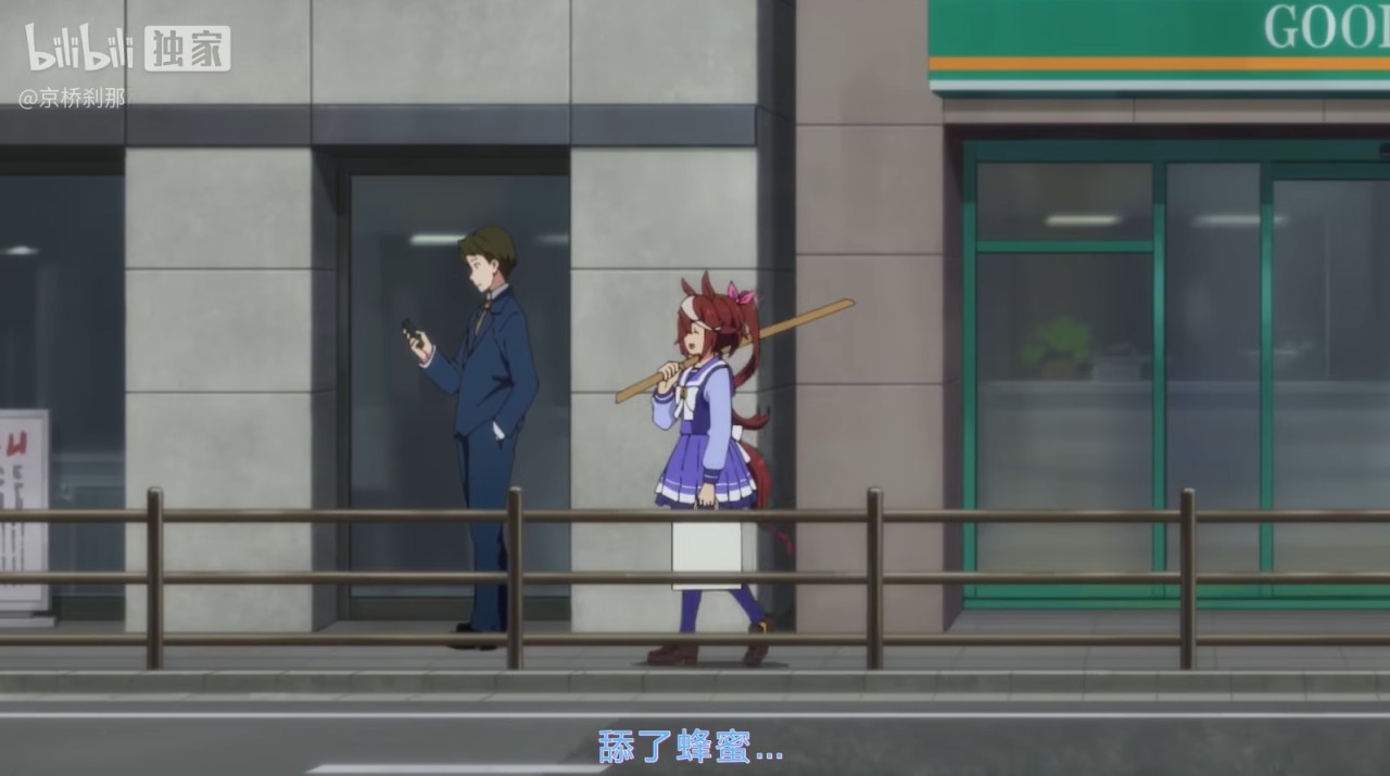在《赛马娘》的动画中,有段角色【东海帝王】哼快乐小曲儿的名场面(《はちみ之歌》)。