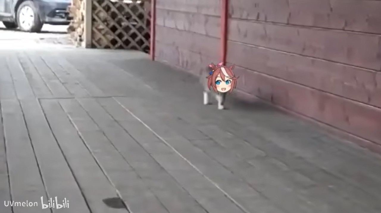 视频(非常简短、简单的视频)中,【UVmelon】将东海帝皇哼唱的旋律与小猫咪拼接,这可以算是哈基米音乐的最初"雏形"。