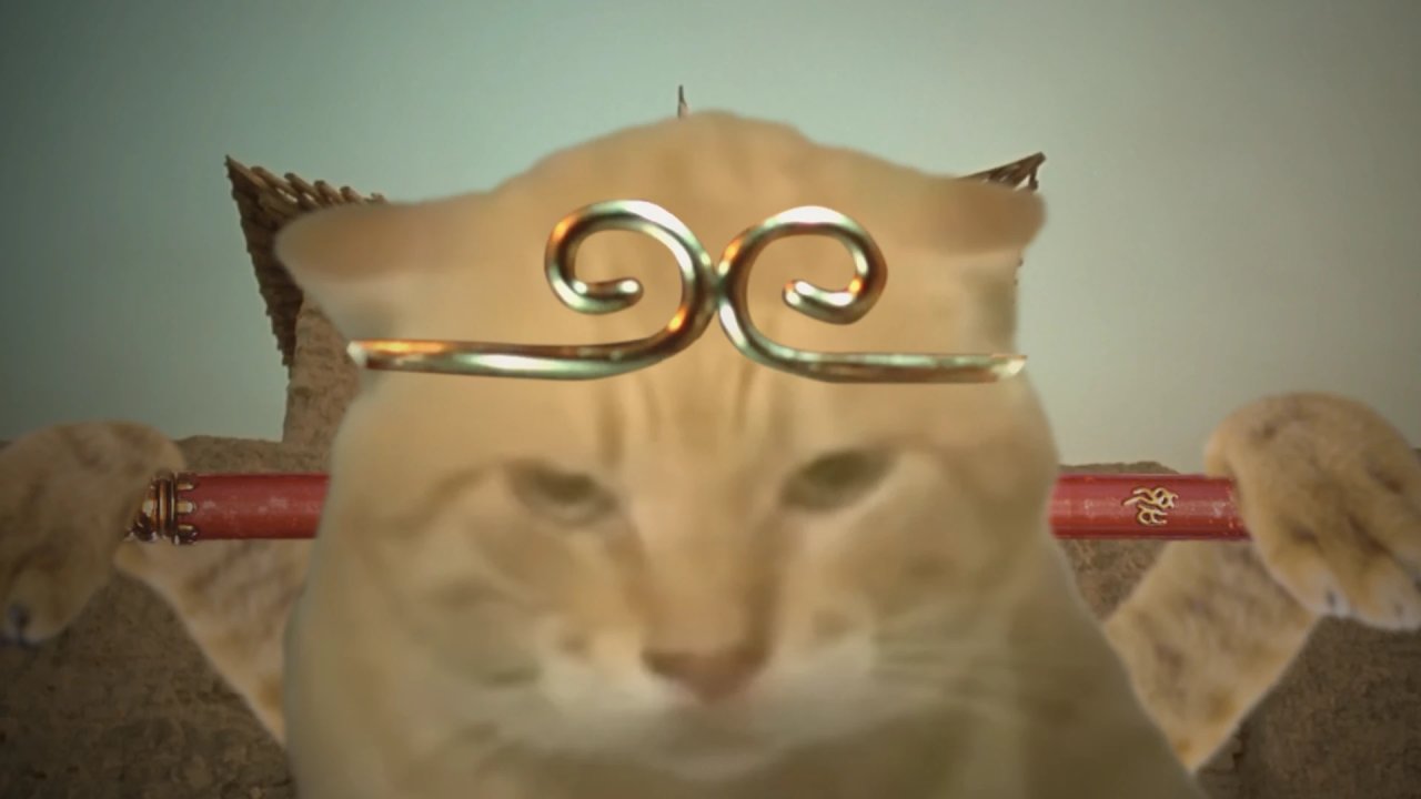 在经过博古架(古战场)一战后,这只猫开始爆火,关于它的二创表情包不断出现。