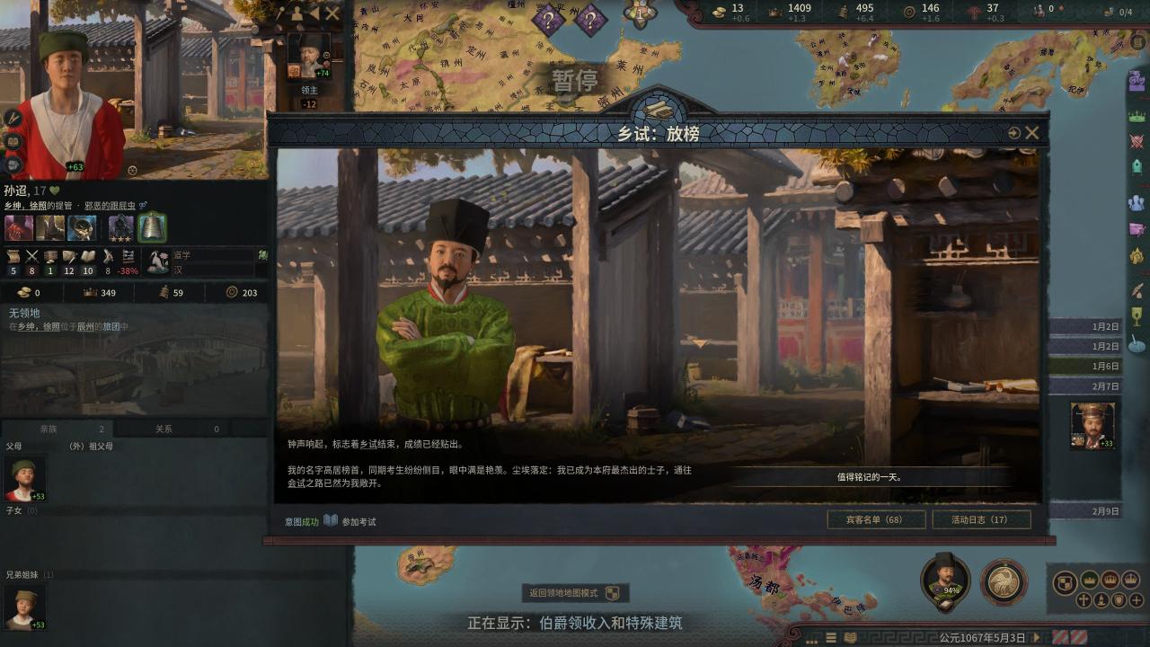 这点同样没有在游戏里得到还原,秦观依然能在自己的家乡江都附近做官,让“男爵领"和庄园的加成都吃到。