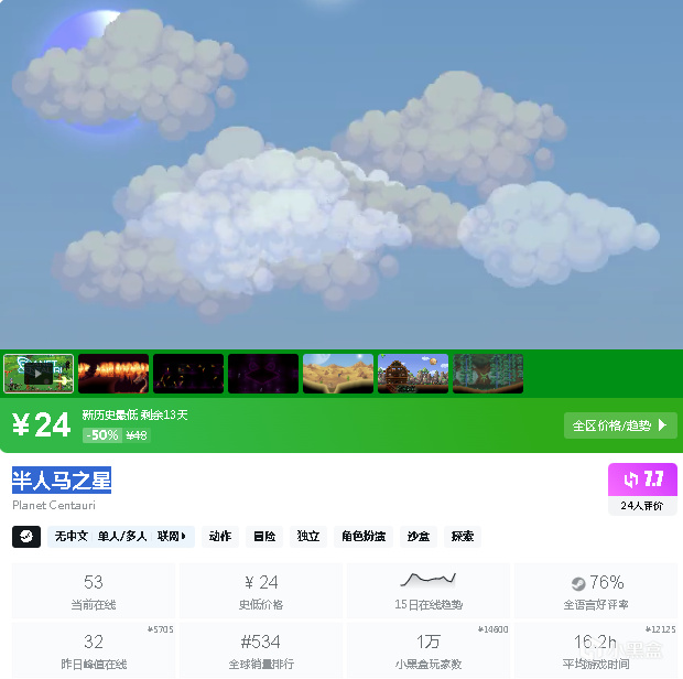 27.《雨中冒险2》:原价80元,现26.4元,折扣率67%6。
