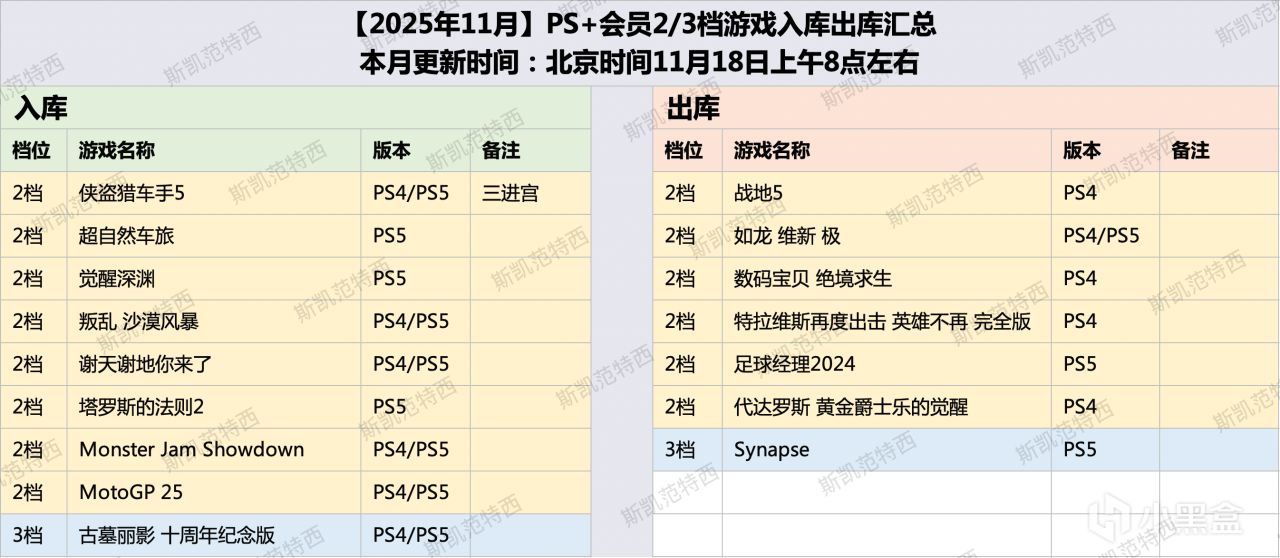 2025年11月的PS+会员2/3档游戏已公布,《侠盗猎车手5》领衔,汇总如下: