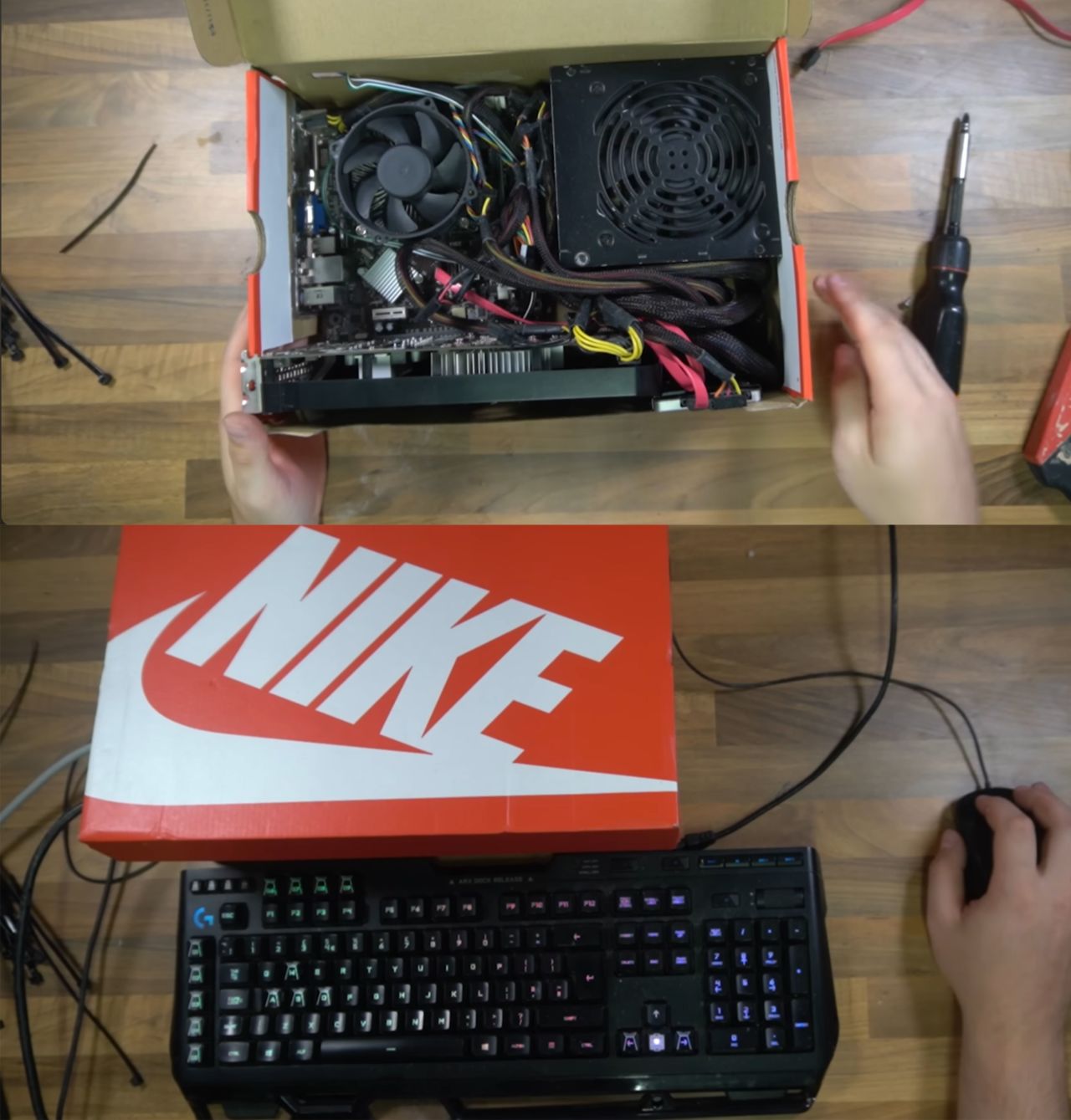 不过拿鞋盒当机箱难以会遇到两个难题,一个是鞋盒支撑的强度不够,容易破损;另一个那就是鞋盒并没有球鞋那样透气,尽管盒子不会闻到脚气,但时间长了,总会闻到硬件焦焦的体香