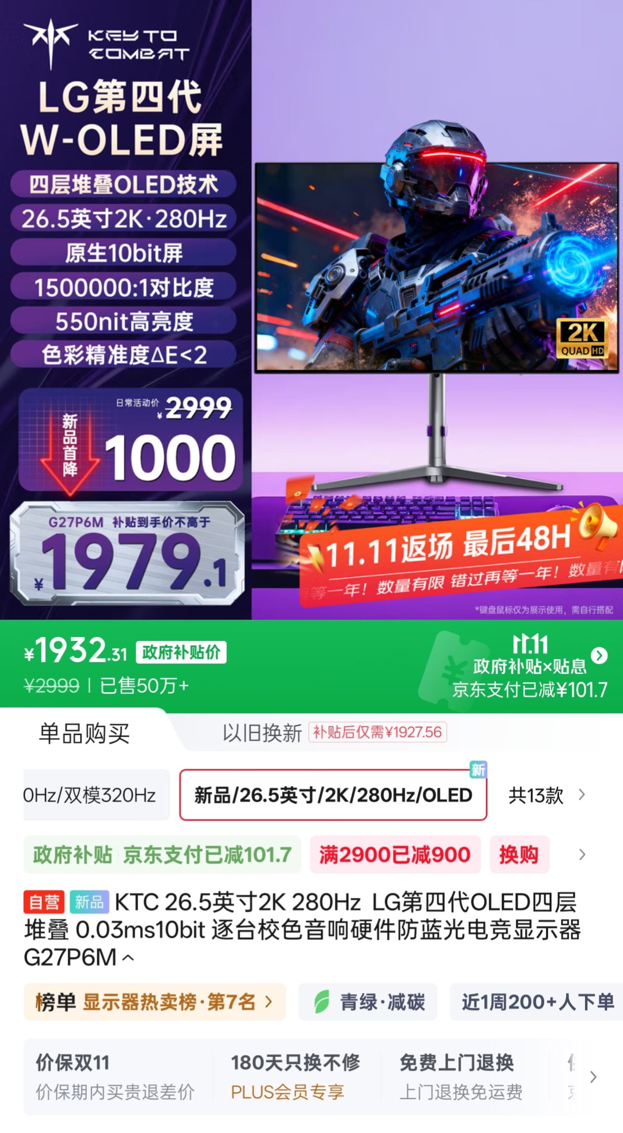 显示器区虽然没能等来像618那样超强的国补力度,但不论活动存在与否,都挡不住厂家疯狂杀价的决心。