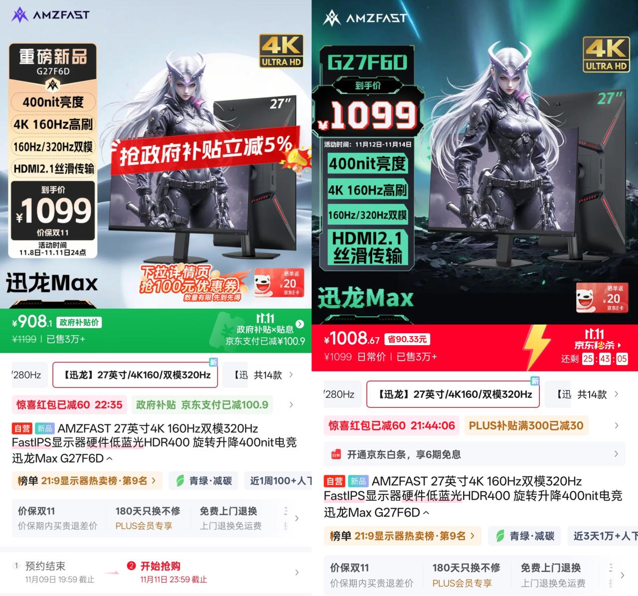 今年双11最具性价比的显示器一定是AMZFAST,因为它把4K双模杀到了一个非常恐怖的价格区间,哪怕11号过后因政补停止导致涨价一百,也依然撼动不了它的宰治力。