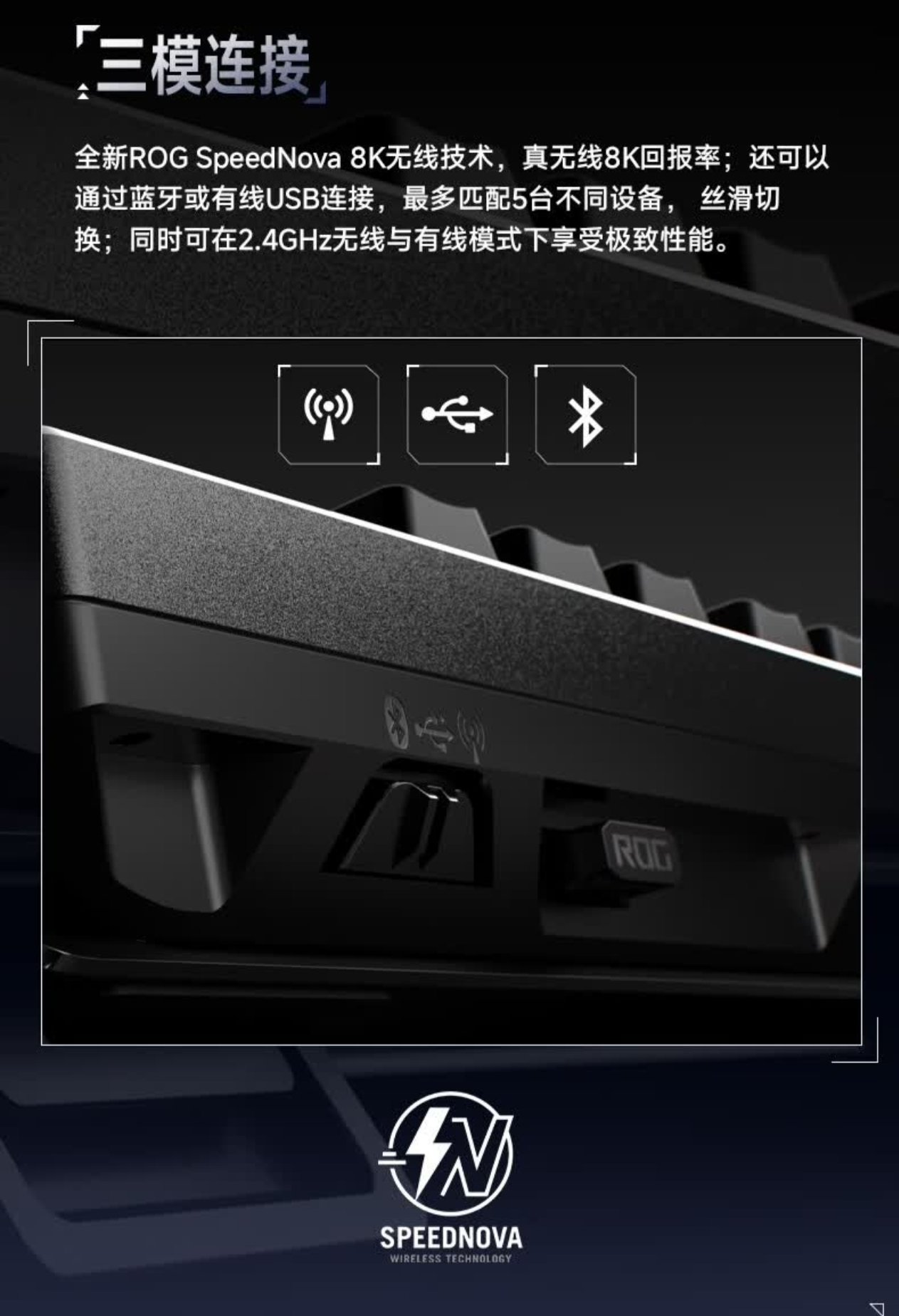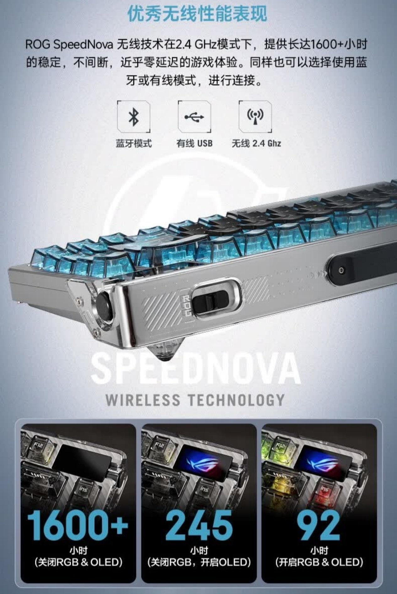 虽然同样没有公布电池的容量大小,但看这个1K回报率下1600+小时(关灯关小屏幕)的无线续航,倒也不必担心体验,只是,想让ROG上什么12000mAh大电池,你还是趁早洗洗睡吧。