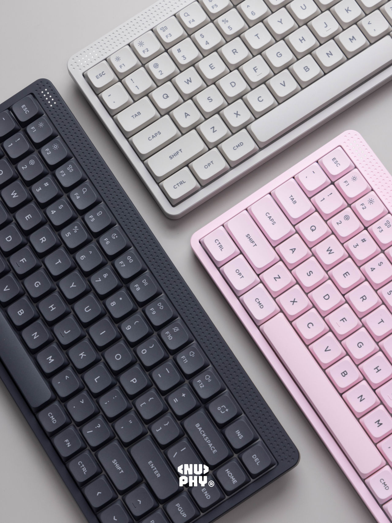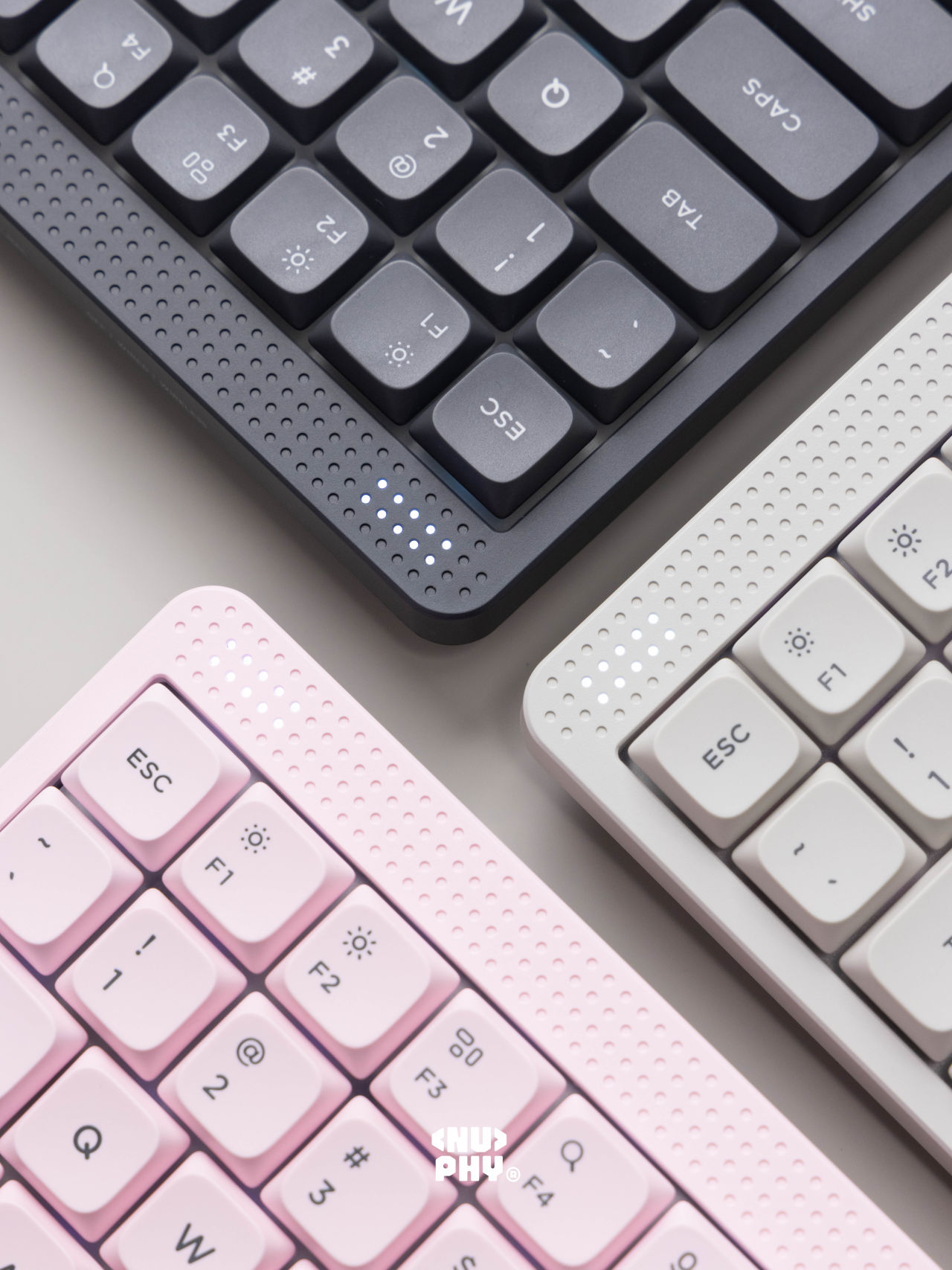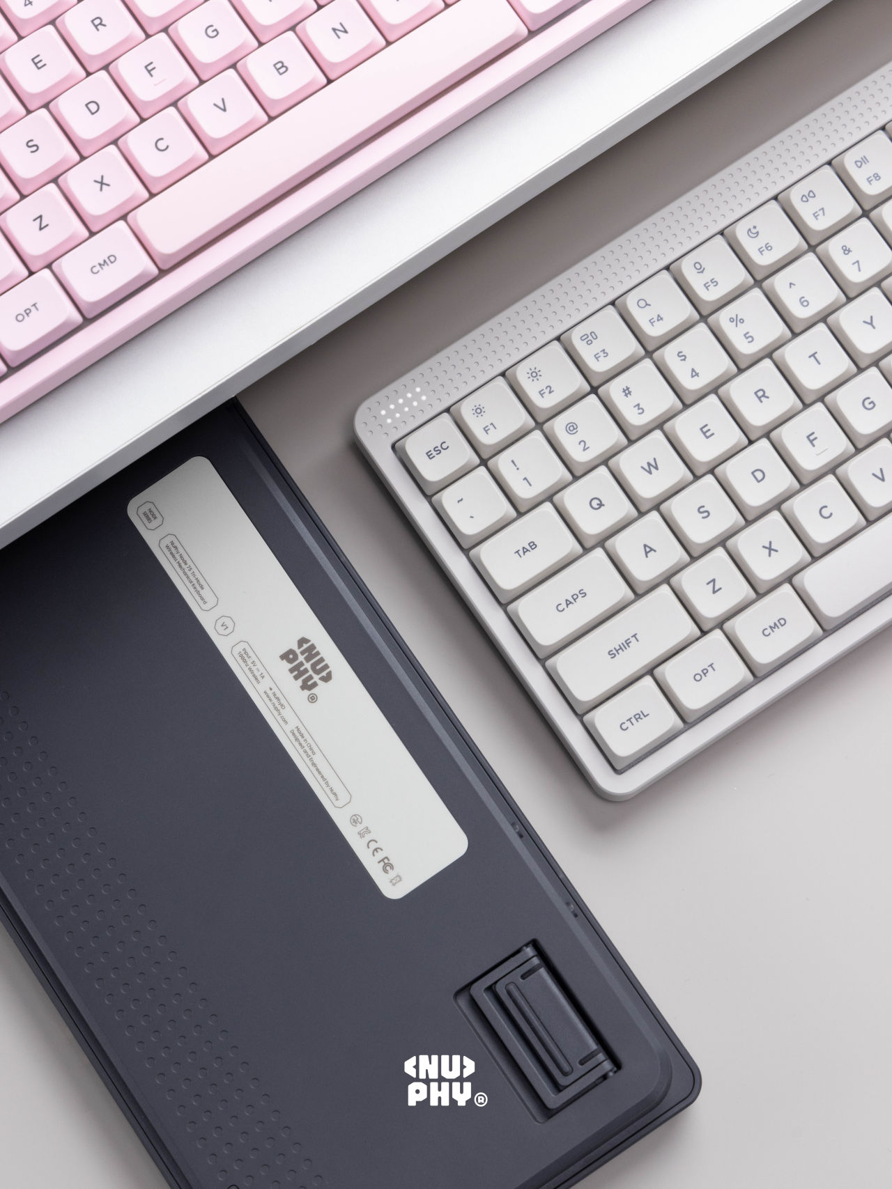 Nuphy在11月5日下午6点,于淘宝旗舰店正式推出Node 75三模机械键盘,Mac/Windows/Android/IOS系统皆可,主打极简设计,Gasket结构,PC定位板,ABS塑料机身,PBT键帽,有线无线1K回报率,蓝牙124Hz,矮轴版本84键,13.8mm前高,3000mAh电池,689g重;高轴版本82键,18.9mm前高,4000mAh,电池827g重,每个版本都有线性红轴,静音轴(黛粉轴),茶轴三个种款式选择,首发399元,淘宝88vip九折券叠淘金币抵扣后338元,有月白、萤粉、曜灰三个配色。