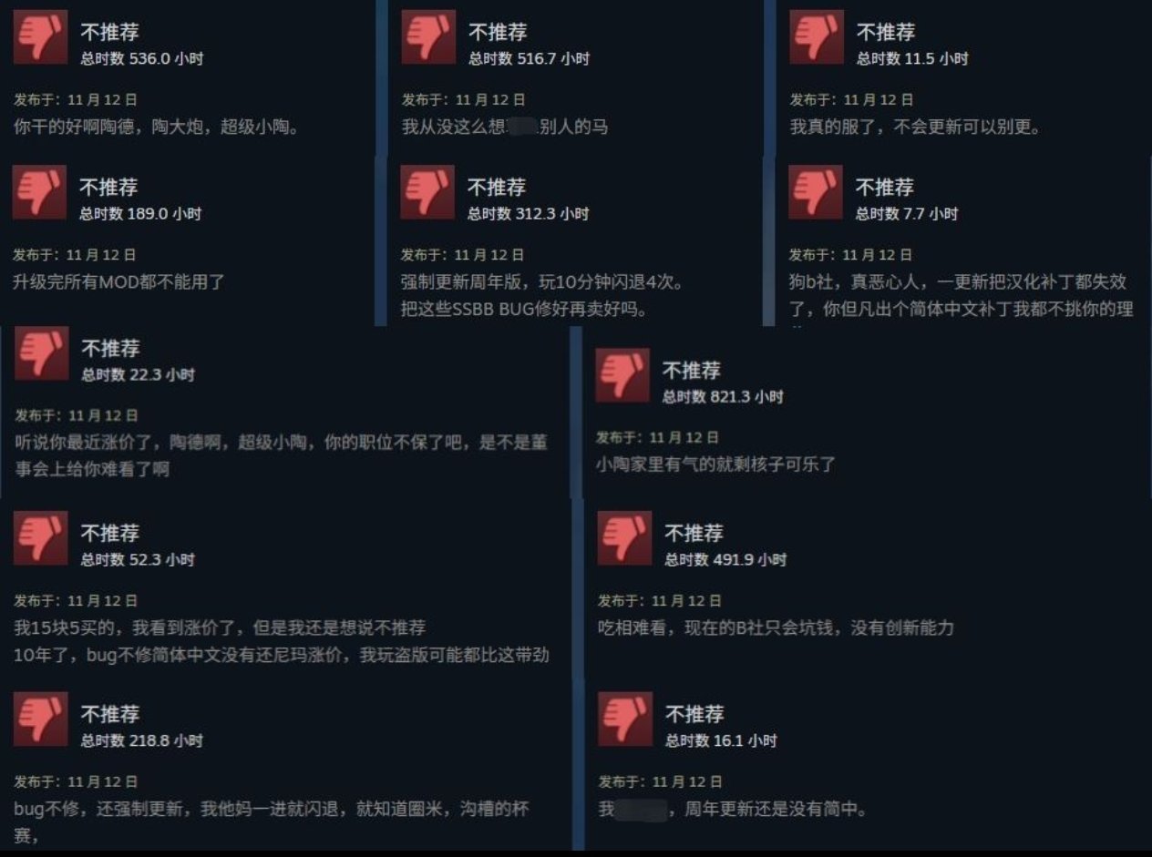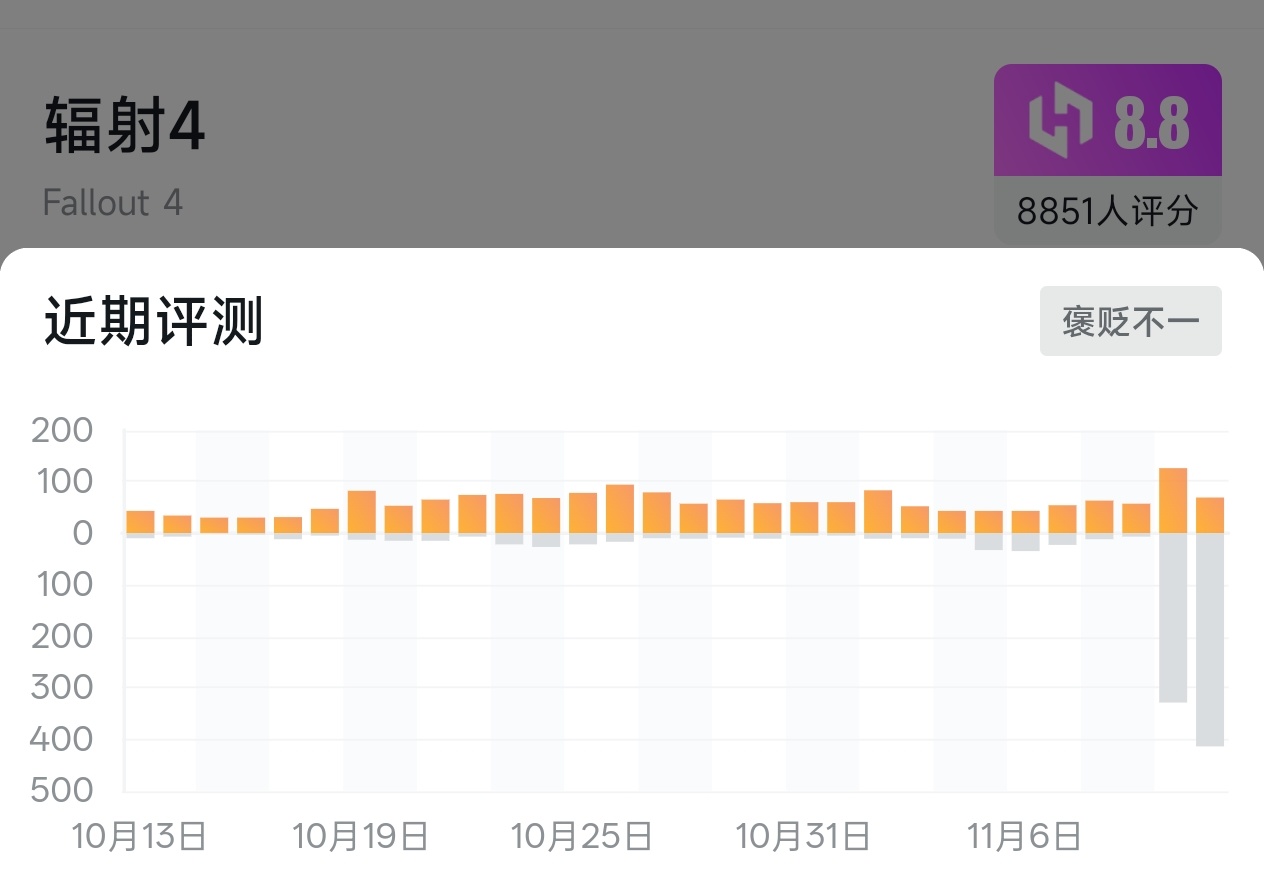 《辐射4》周年纪念版自11月11日上线后遭遇差评轰炸,单日好评率骤降至8%,与此前83%的总好评率形成鲜明对比。