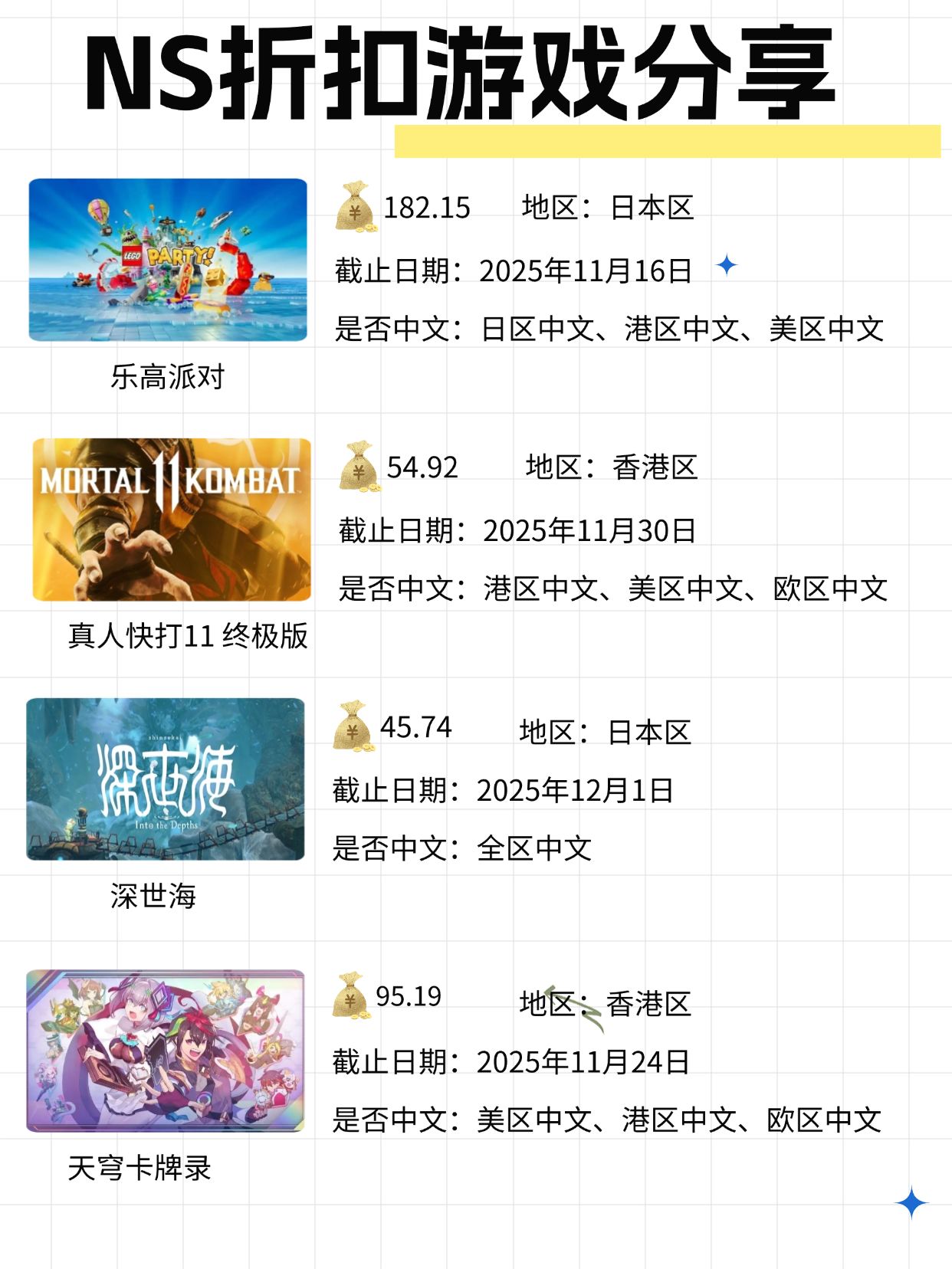 当然,其他服区的游戏也是一般,创世小玩家2游戏虽然好,但是在NS上的表现一般,玩到后期可能会出现卡顿的情况,新出的乐高派对虽然有折扣,但是建议还是等一等,比较适合家庭聚会,如果是单人的话,很没有意思