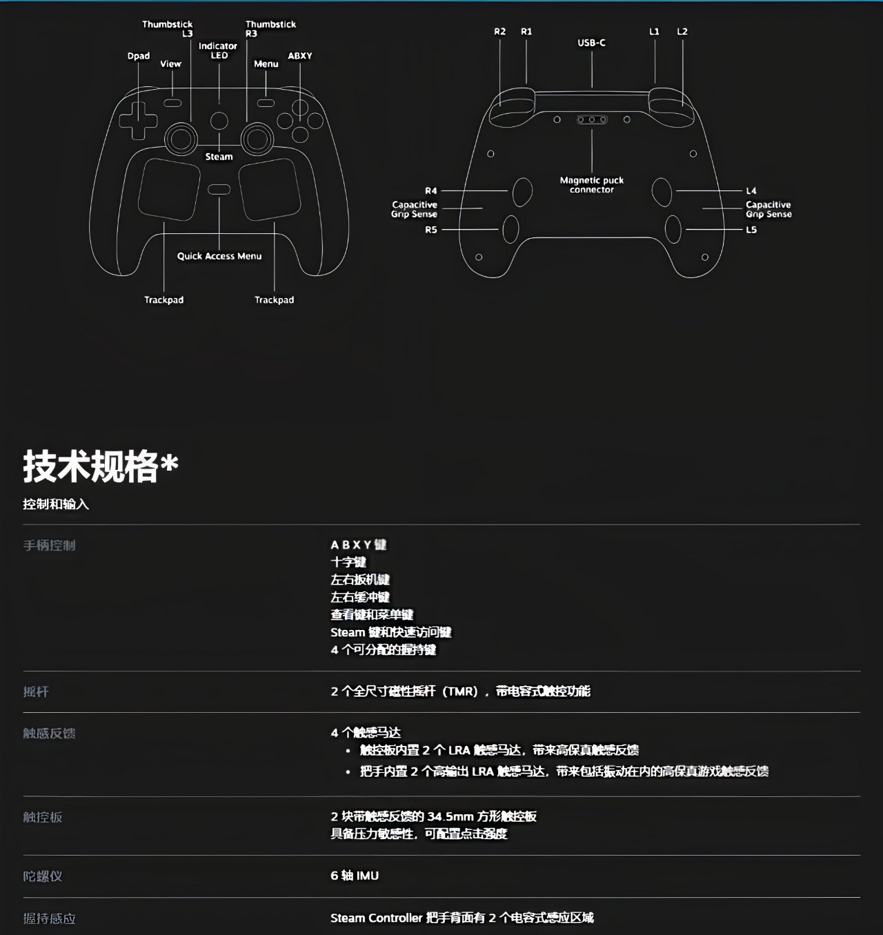 全新Steam Controller手柄获一致好评:搭载TMR摇杆与“Grip Sense”功能(握柄启动陀螺仪体感,松手暂停),触控板顺滑精准,且无线接收模块集成于主机,支持即插即用、无线开机及休眠续玩。